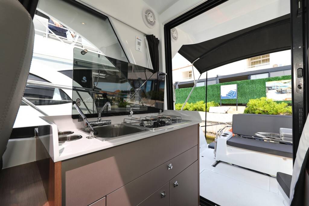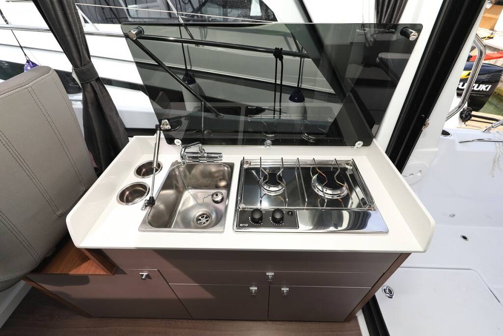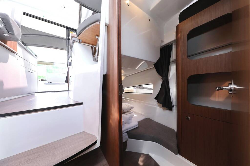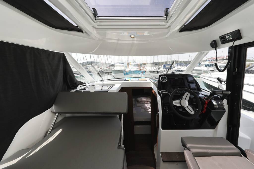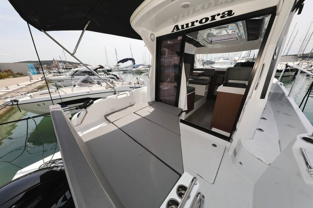 Motorboot Antares 9 OB Aurora, Baujahr 2023, liegt im Marina Pirovac, Sibenik & Umgebung, Kroatien vor Anker. Es verfügt über 2 Kabinen und bietet Platz für 4 + 2 Personen mit 1 Toiletten.
