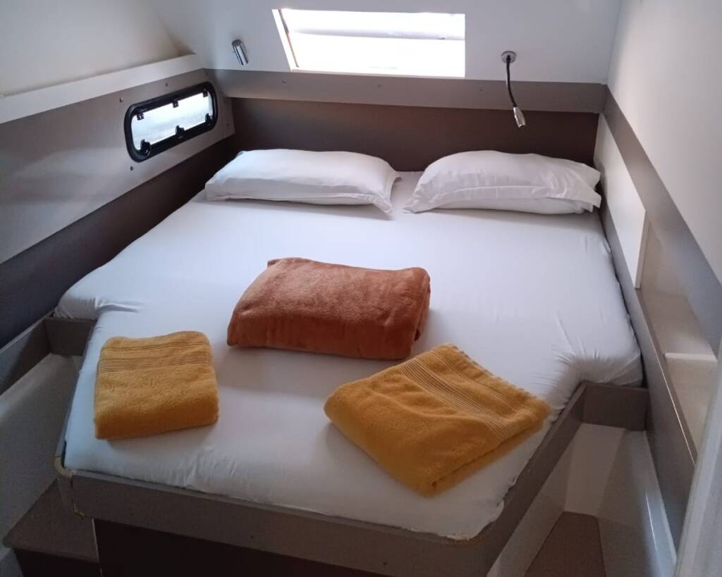 Katamaran Bali 4.1 NIELTHI, Baujahr 2020, liegt im La Paz, Costa Baja Marina, Baja California Sur, Mexico vor Anker. Es verfügt über 4 + 2 Kabinen und bietet Platz für 8 + 2 + 2 Personen mit 4 Toiletten.