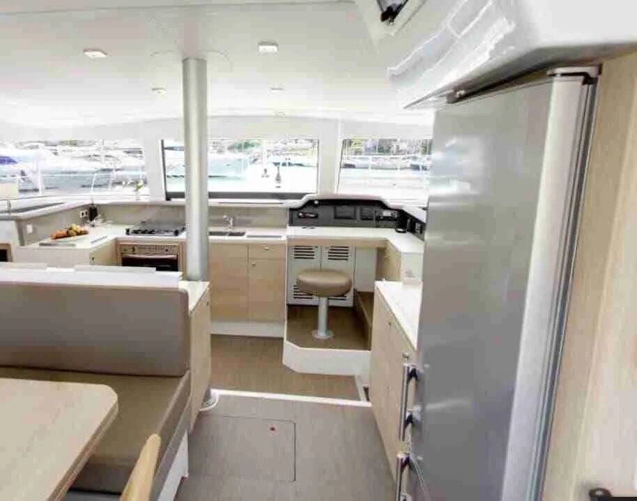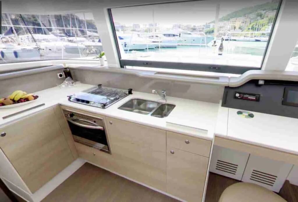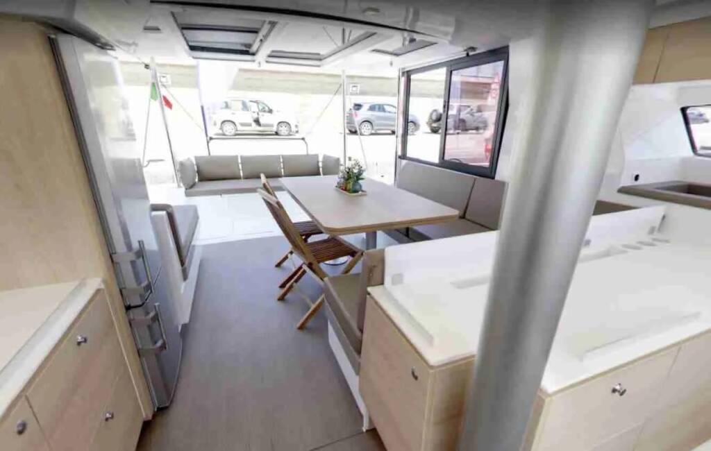 Katamaran Bali 4.1 Siga Siga, Baujahr 2019, liegt im Agropoli, Campania, Italien vor Anker. Es verfügt über 4 Kabinen und bietet Platz für 8 + 2 Personen mit 4 Toiletten.