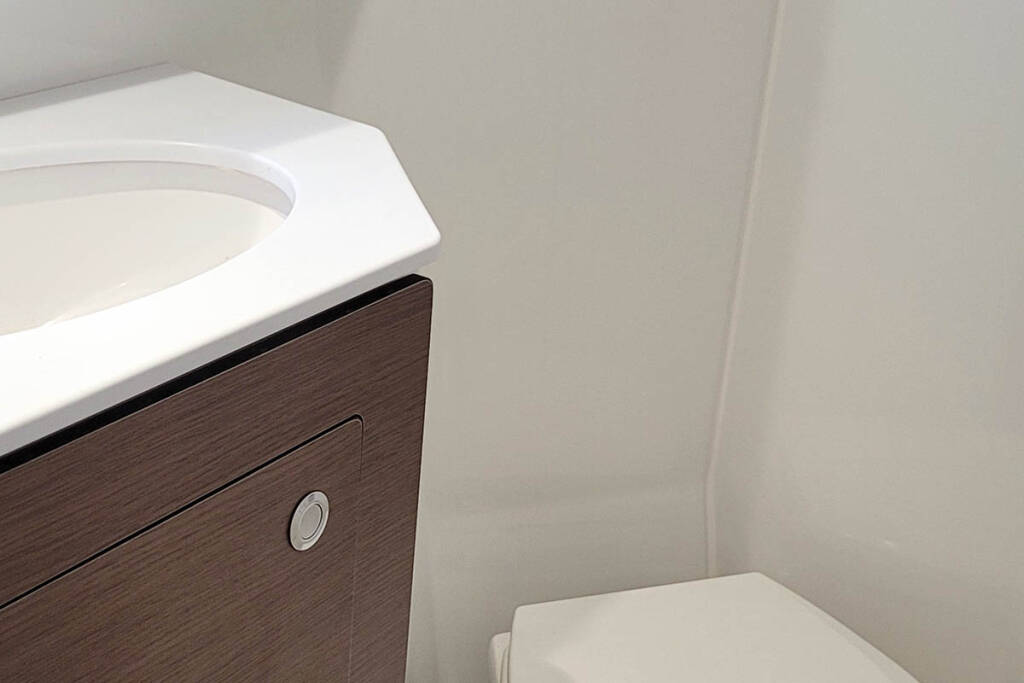+provisioning ; Crew on board must have their own toilets/ showers. If either a skipper or a hostess/cook is on board, 1 double cabin will be required for him/her. If both a skipper and a hostess/cook are on board, 1 double cabin and 1 forepeak cabin will be required for them. Exceptions exists for specific layouts, Sales Agents will provide more details about the different boat models.