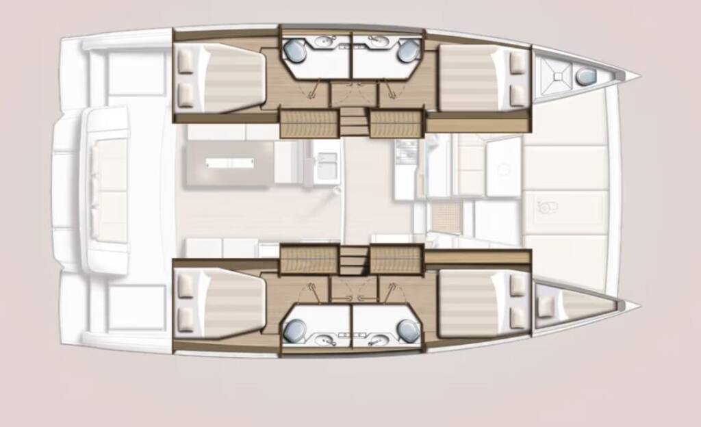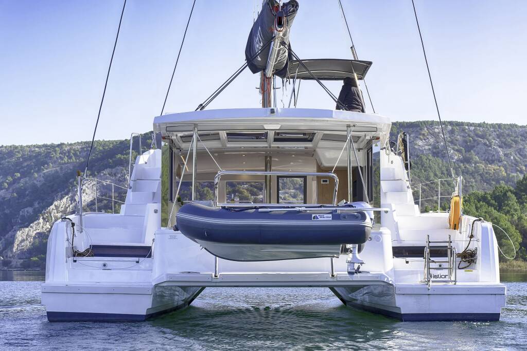 Katamaran Bali 4.2 First Feeling, Baujahr 2024, liegt im ACI Marina Skradin, Sibenik & Umgebung, Kroatien vor Anker. Es verfügt über 4 + 1 Kabinen und bietet Platz für 8 + 1 Personen mit 4 + 1 Toiletten.