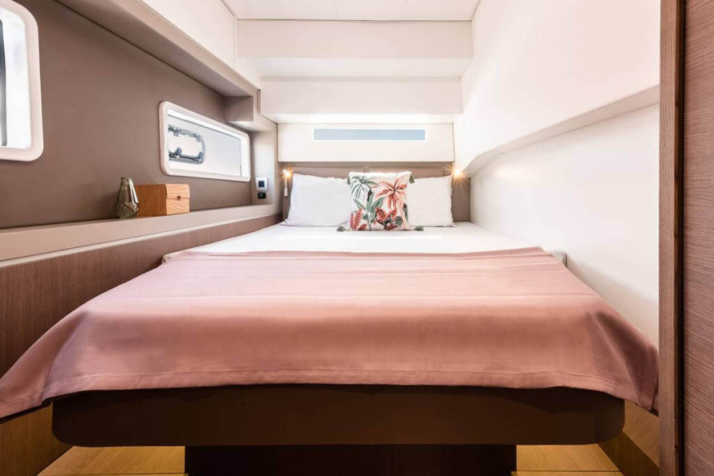 Katamaran Bali 4.2 Lizzy, Baujahr 2023, liegt im Trogir, Yachtclub Seget (Marina Baotić), Split & Umgebung, Kroatien vor Anker. Es verfügt über 4 + 1 Kabinen und bietet Platz für 8 + 1 + 1 Personen mit 4 + 1 Toiletten.