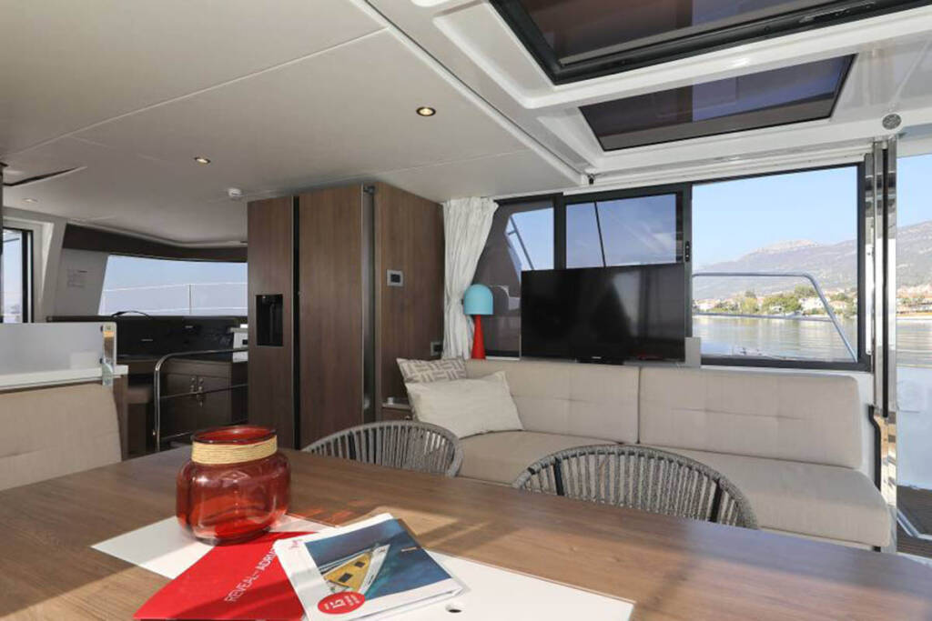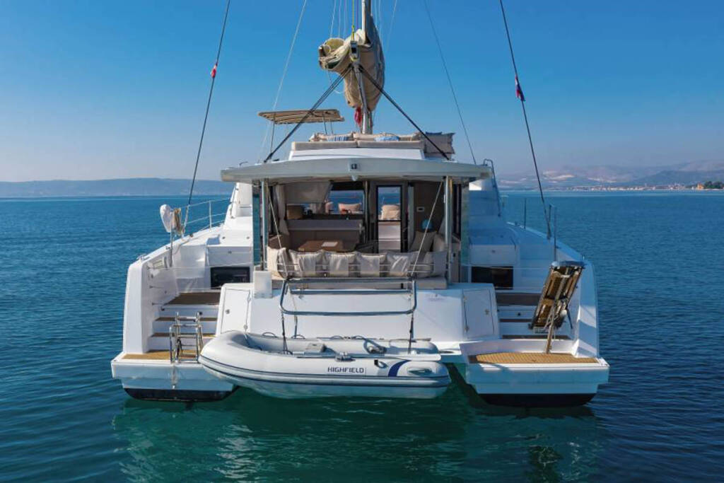 Katamaran Bali 4.4 Beau Loup, Baujahr 2023, liegt im Seychelles, Eden Island Marina, Mahé, Seychellen vor Anker. Es verfügt über 4 + 1 Kabinen und bietet Platz für 8 + 1 Personen mit 4 + 1 Toiletten.