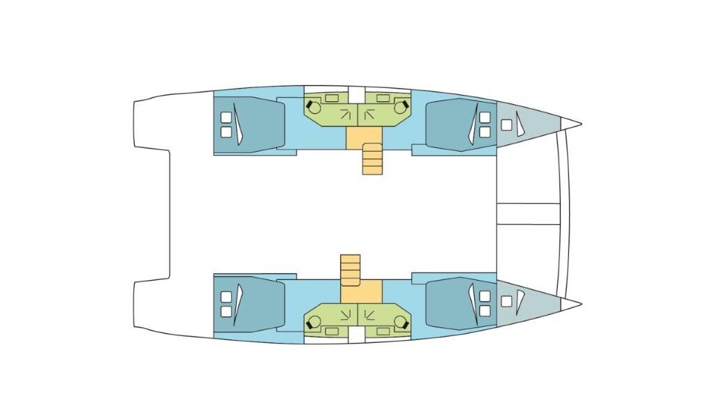Katamaran Bali 4.4 CELSIUS, Baujahr 2024, liegt im Guadeloupe, La Marina Bas du Fort, Guadeloupe, Karibik vor Anker. Es verfügt über 4 + 2 Kabinen und bietet Platz für 8 + 2 Personen mit 4 Toiletten.