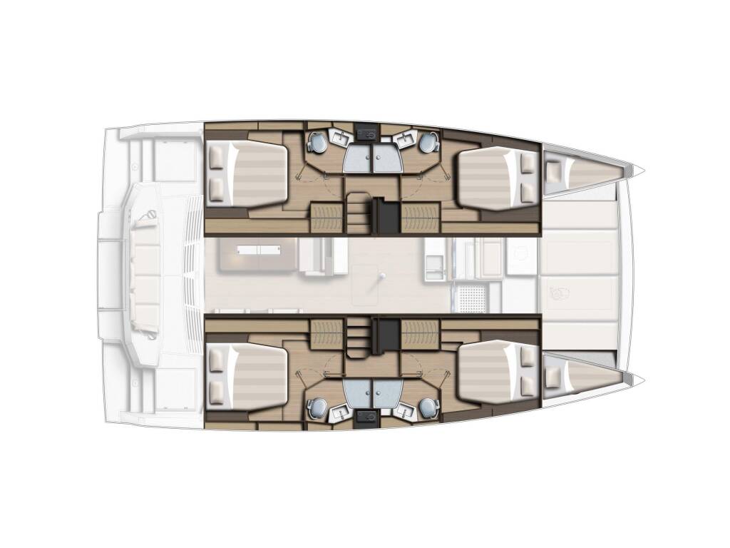 Katamaran Bali 4.4 Emmelia, Baujahr 2022, liegt im Athens, Alimos marina, Athens area/Saronic/Peloponese, Griechenland vor Anker. Es verfügt über 4 + 2 Kabinen und bietet Platz für 8 + 2 Personen mit 4 Toiletten.