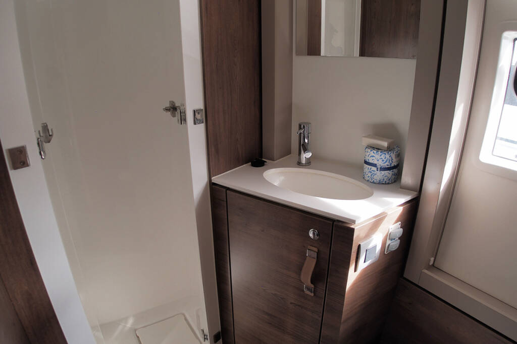 +provisioning ; Crew on board must have their own toilets/ showers. If either a skipper or a hostess/cook is on board, 1 double cabin will be required for him/her. If both a skipper and a hostess/cook are on board, 1 double cabin and 1 forepeak cabin will be required for them. Exceptions exists for specific layouts, Sales Agents will provide more details about the different boat models.