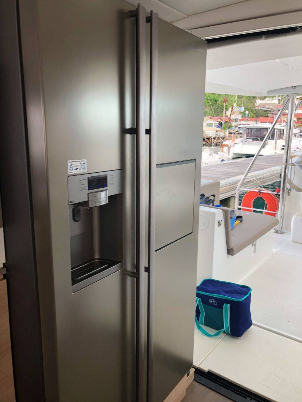 Katamaran Bali 4.5 VIEQUES, Baujahr 2018, liegt im St. Martin, Marina de L'Anse Marcel, St. Martin, Karibik vor Anker. Es verfügt über 4 + 2 Kabinen und bietet Platz für 8 + 2 Personen mit 4 Toiletten.