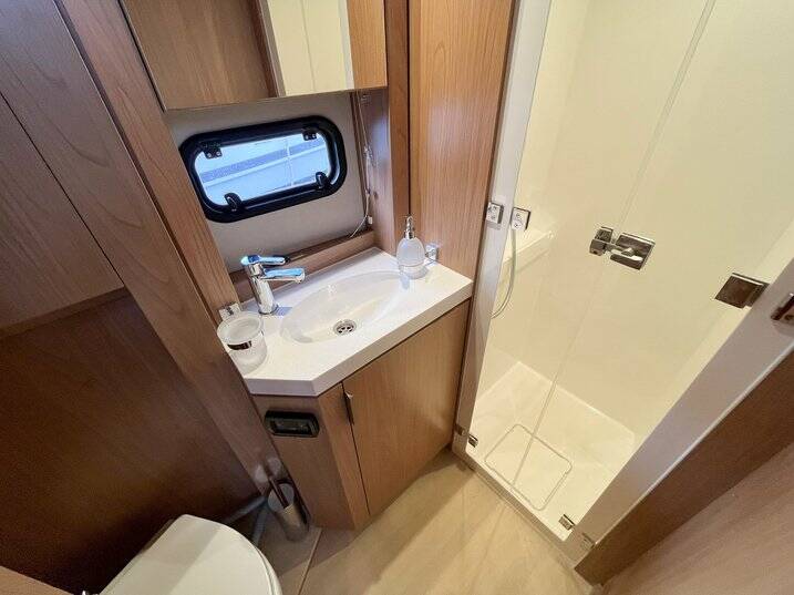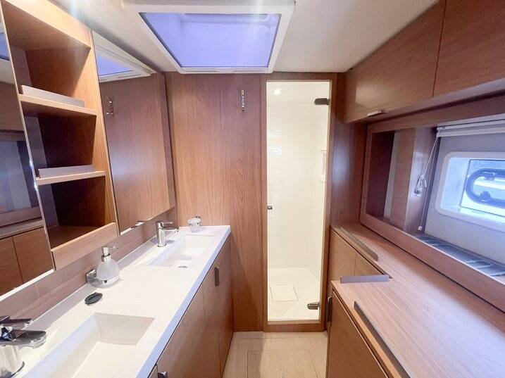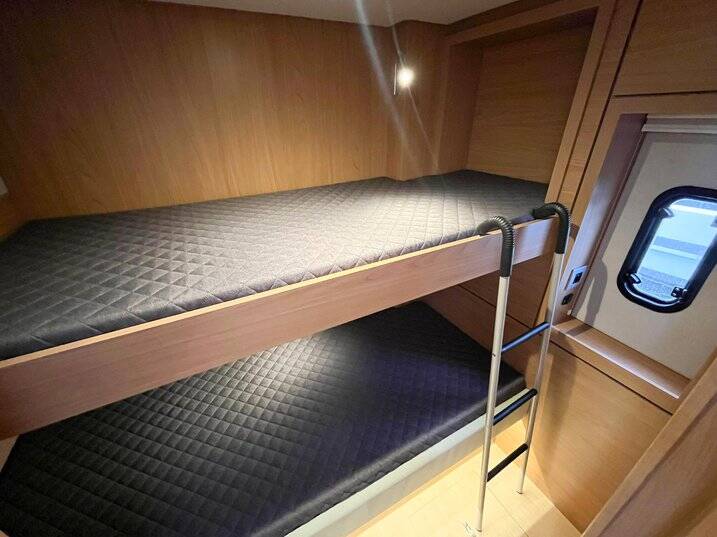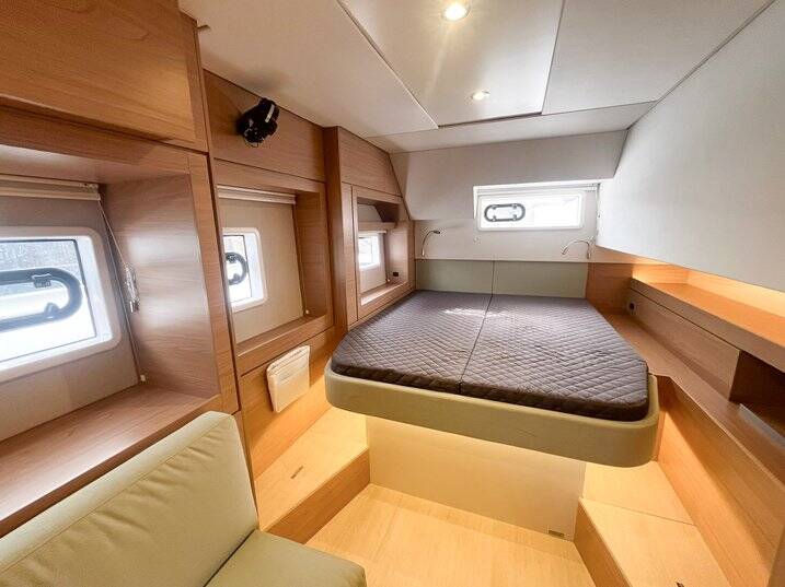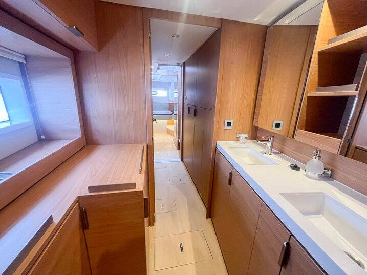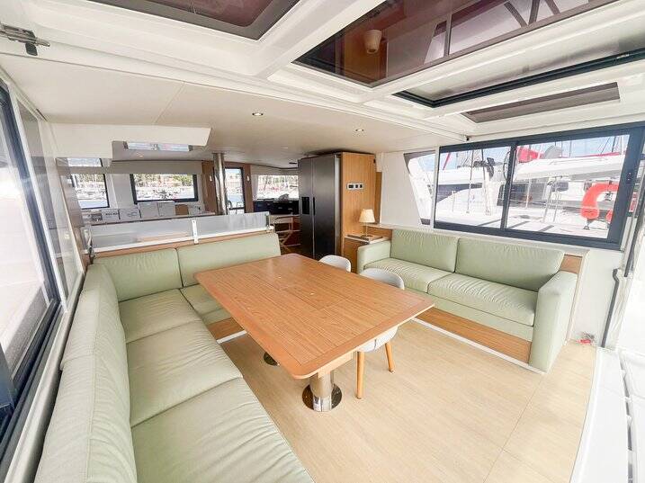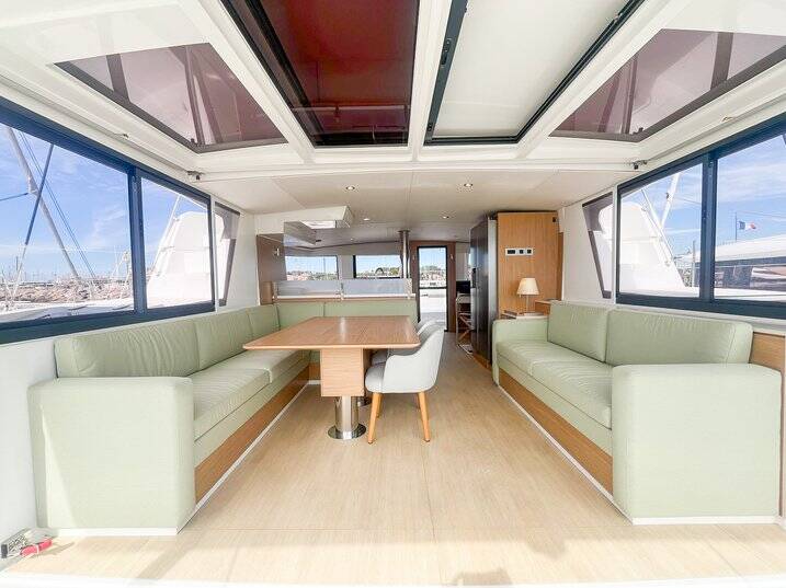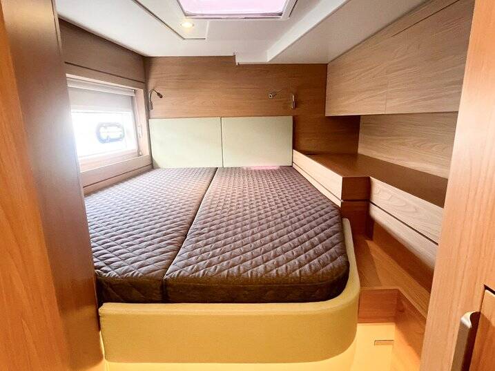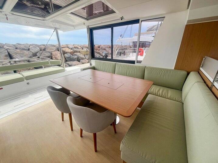 Katamaran Bali 4.6 Queen Mary, Baujahr 2025, liegt im Marines de Cogolin, Provence-Alpes-Côte d'Azur, Frankreich vor Anker. Es verfügt über 4 Kabinen und bietet Platz für 8 Personen mit 4 Toiletten.