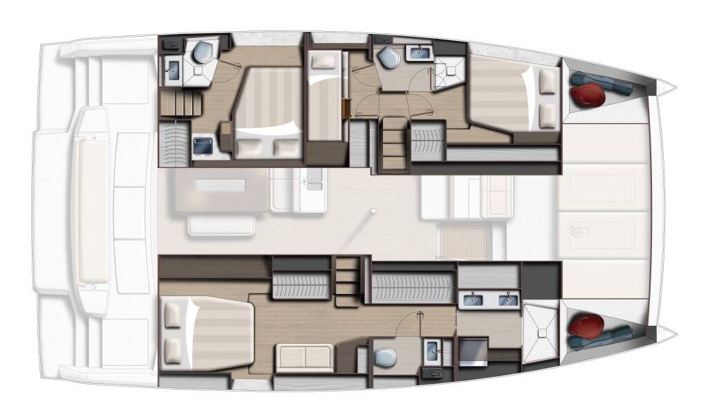 Katamaran Bali 4.6 Sail and Travel, Baujahr 2022, liegt im Marina Pirovac, Sibenik & Umgebung, Kroatien vor Anker. Es verfügt über 4 + 2 Kabinen und bietet Platz für 8 + 2 Personen mit 3 Toiletten.