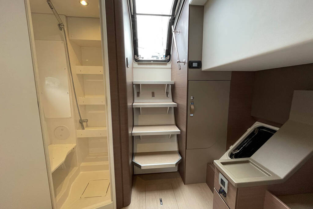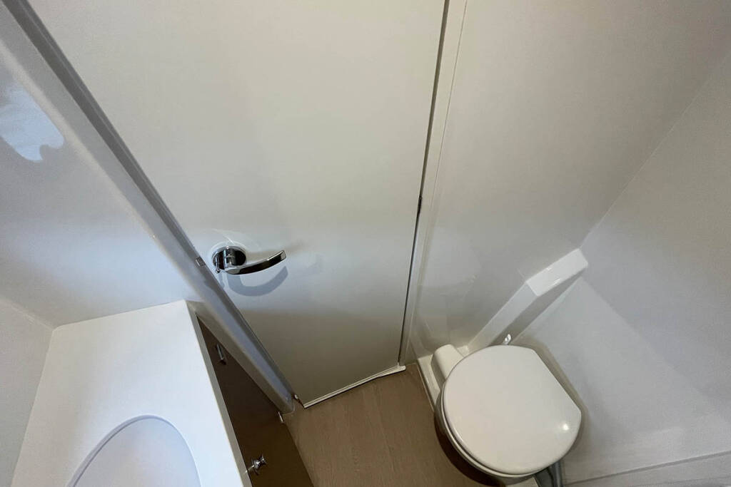 +provisioning ; Crew on board must have their own toilets/ showers. If either a skipper or a hostess/cook is on board, 1 double cabin will be required for him/her. If both a skipper and a hostess/cook are on board, 1 double cabin and 1 forepeak cabin will be required for them. Exceptions exists for specific layouts, Sales Agents will provide more details about the different boat models.