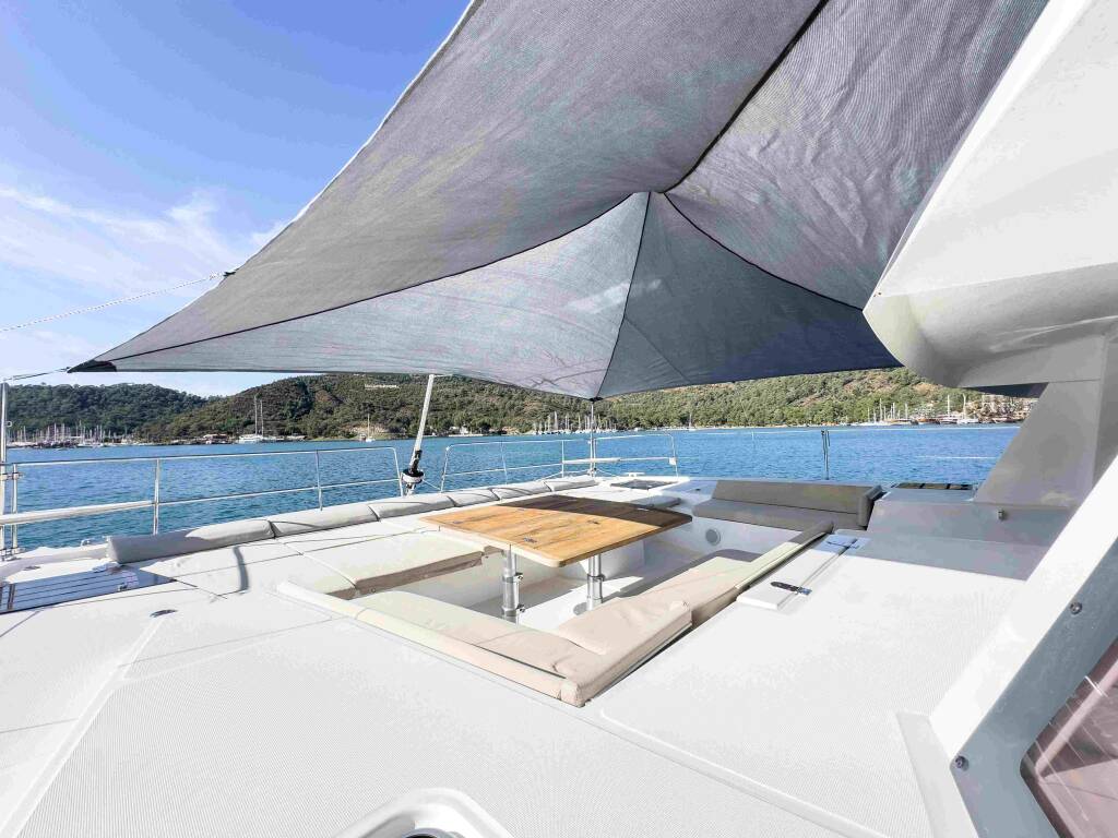 Katamaran Bali 5.4 La Brise 2, Baujahr 2025, liegt im Fethiye, Yacht Classic Hotel Marina, Aegean, Türkei vor Anker. Es verfügt über 4 + 2 Kabinen und bietet Platz für 8 + 2 Personen mit 4 + 2 Toiletten.