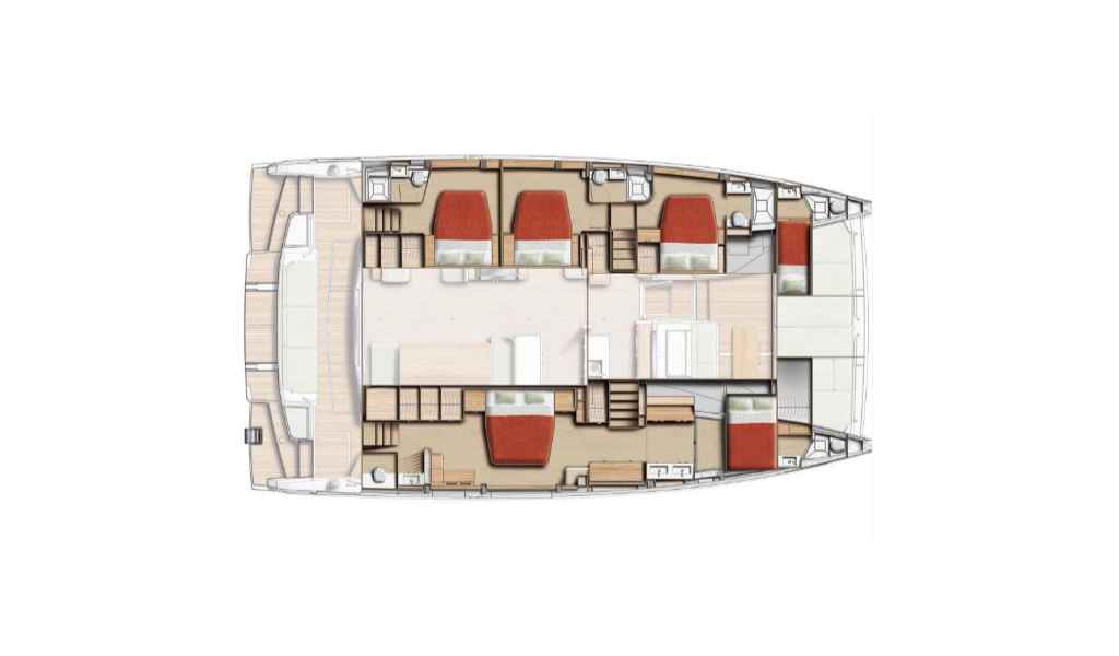 Sie verfügt über fünf geräumige Doppelkabinen, jeweils mit eigenem Bad, die mit hochwertigen Materialien für maximale Entspannung stilvoll eingerichtet sind. Zwei separate Crewkabinen mit eigenem Bad garantieren den Gästen absolute Privatsphäre.