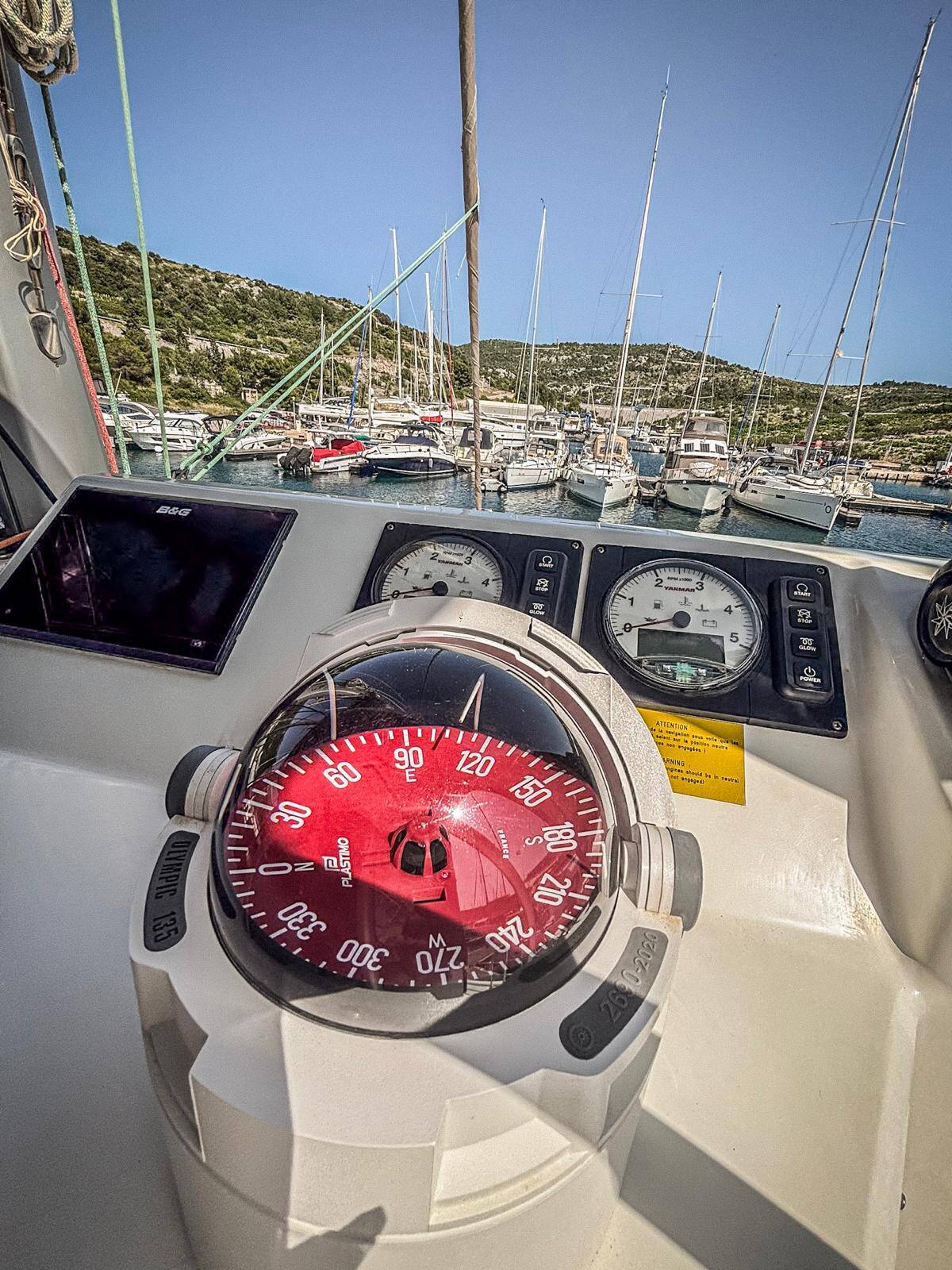 Katamaran Bali Catspace Nammu, Baujahr 2021, liegt im Marina Kremik, Primosten, Sibenik & Umgebung, Kroatien vor Anker. Es verfügt über 4 Kabinen und bietet Platz für 8 + 2 Personen mit 4 Toiletten.