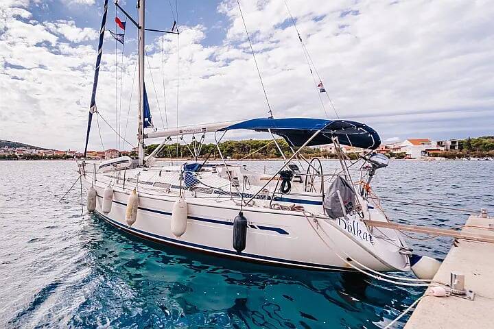 Segelyacht Bavaria 36 Cruiser Dolkar, Baujahr 2003, liegt im Marina Betina, Murter, Sibenik & Umgebung, Kroatien vor Anker. Es verfügt über 3 Kabinen und bietet Platz für 6 + 2 Personen mit 1 Toiletten.