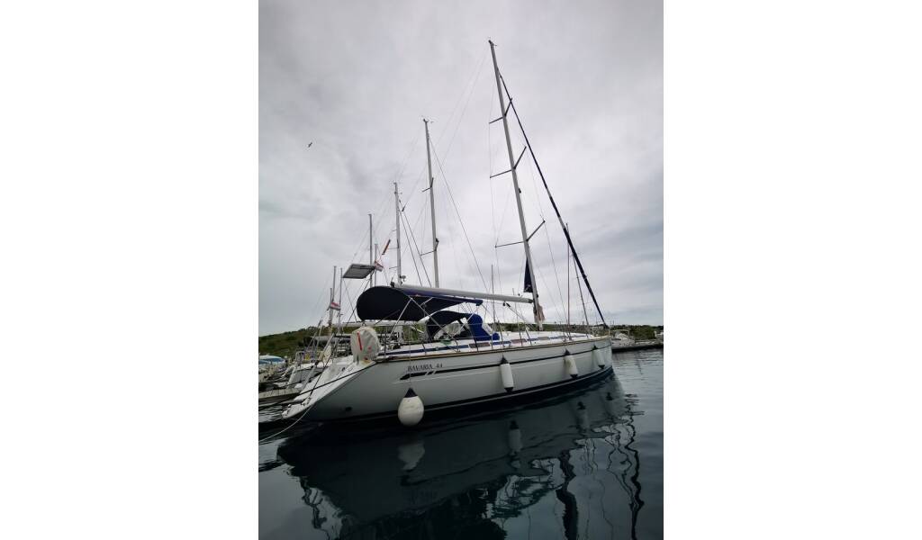 Segelyacht Bavaria 44 Sea Gull, Baujahr 2005, liegt im Marina Kremik, Primosten, Sibenik & Umgebung, Kroatien vor Anker. Es verfügt über 4 Kabinen und bietet Platz für 8 + 1 Personen mit 2 Toiletten.