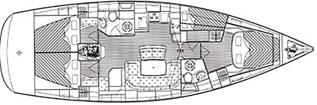 Segelyacht Bavaria 46 Cruiser Chronos, Baujahr 2006, liegt im Port of Avdira, East Macedonia and Thrace, Griechenland vor Anker. Es verfügt über 4 Kabinen und bietet Platz für 8 + 1 Personen mit 2 Toiletten.