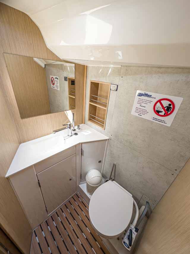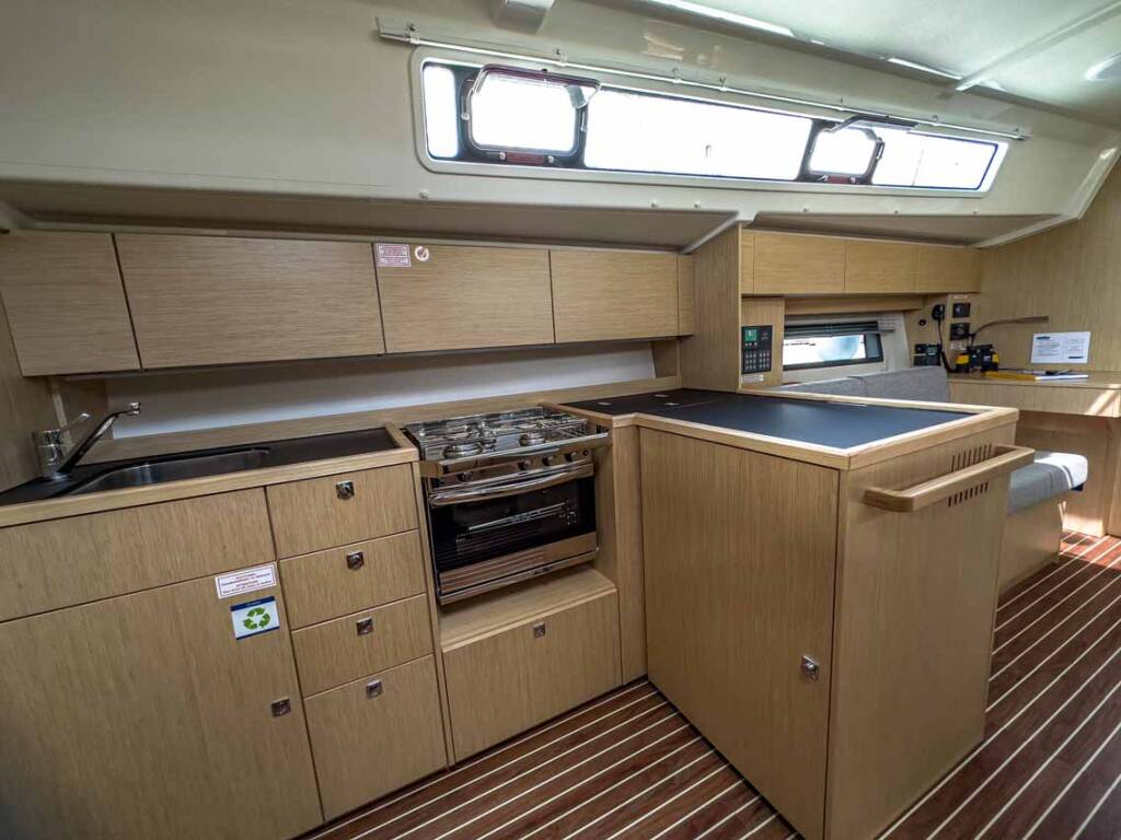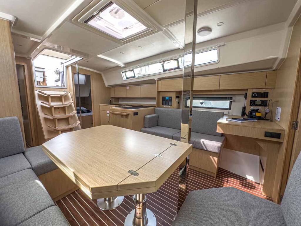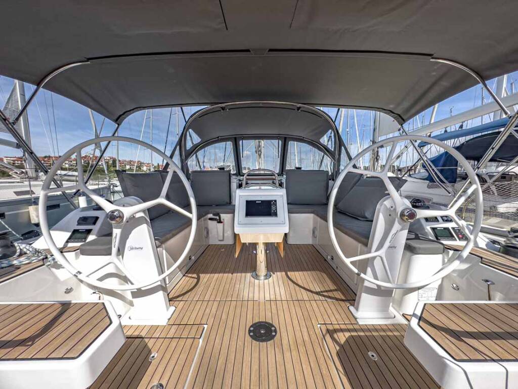 Segelyacht Bavaria C42 Livia, Baujahr 2024, liegt im Marina Tehnomont Veruda, Pula, Istrien, Kroatien vor Anker. Es verfügt über 3 Kabinen und bietet Platz für 6 + 1 Personen mit 2 Toiletten.