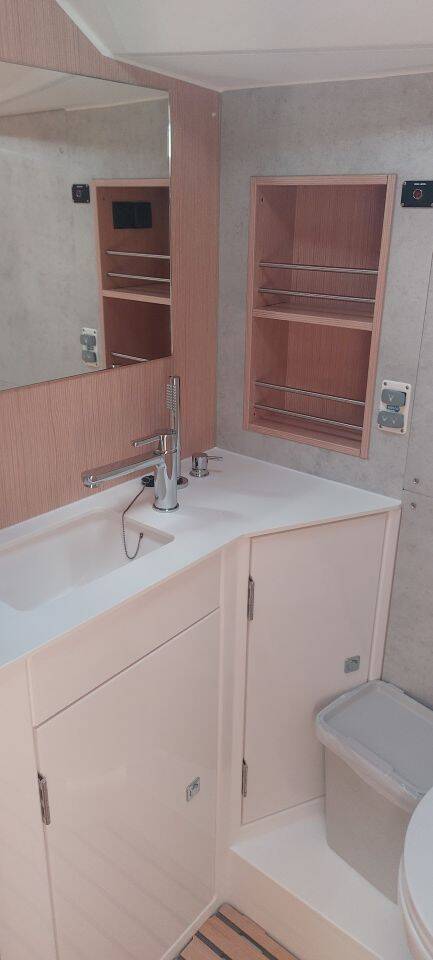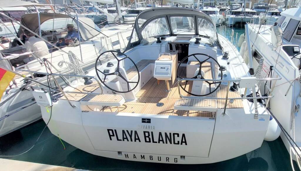 Segelyacht Bavaria C42 Playa Blanca, Baujahr 2023, liegt im Palma de Mallorca, La Lonja, Balearische Inseln, Spanien vor Anker. Es verfügt über 3 Kabinen und bietet Platz für 6 + 2 Personen mit 2 Toiletten.