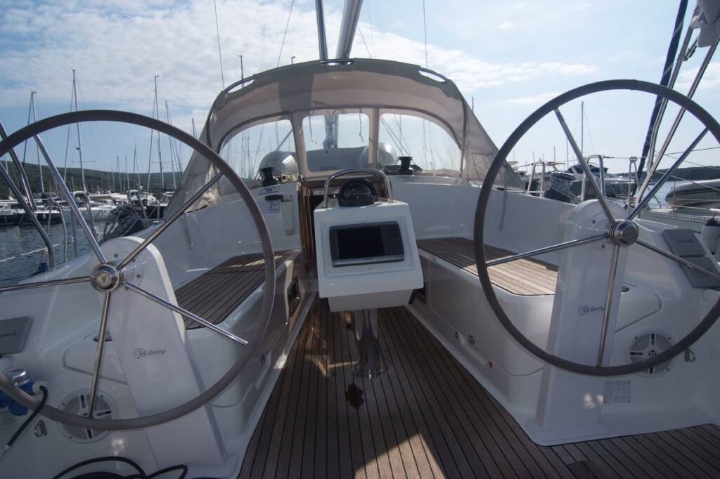 Segelyacht Bavaria Cruiser 37 Dori, Baujahr 2015, liegt im Marina Punat, Krk, Kvarner, Kroatien vor Anker. Es verfügt über 3 Kabinen und bietet Platz für 6 + 1 Personen mit 1 Toiletten.