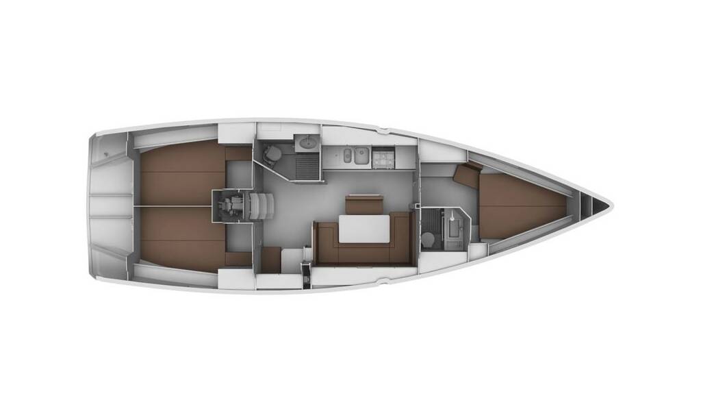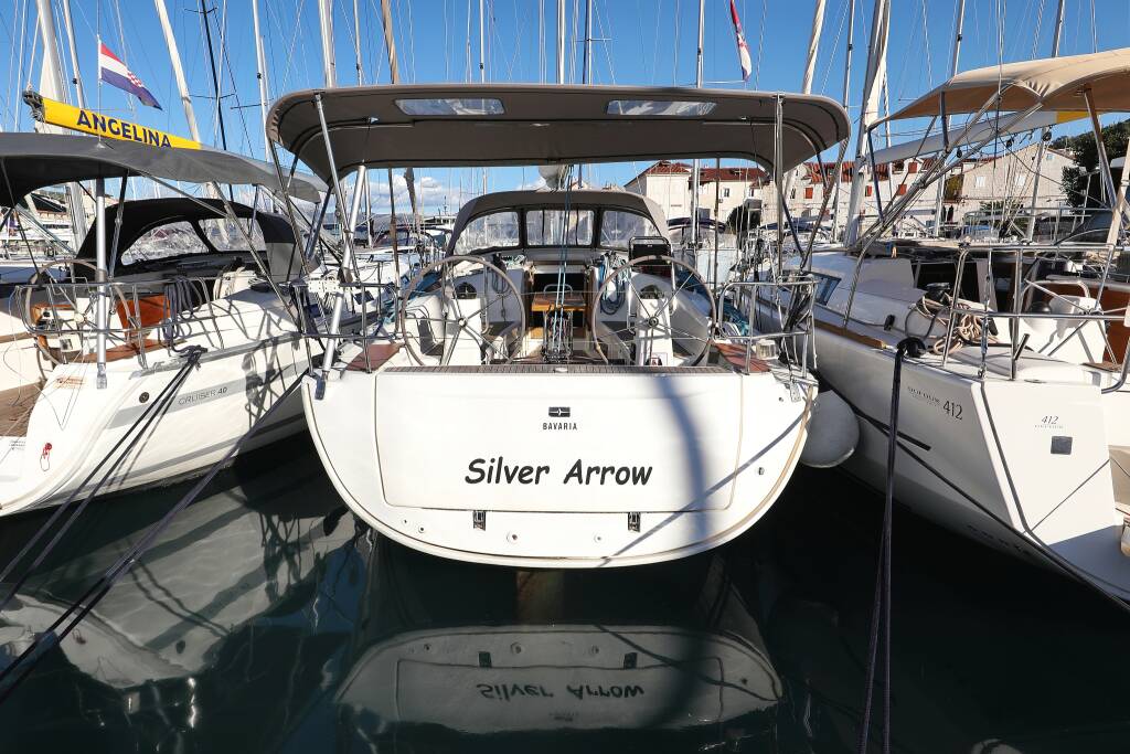 Segelyacht Bavaria Cruiser 40 S Silver Arrow, Baujahr 2012, liegt im ACI Marina Trogir, Split & Umgebung, Kroatien vor Anker. Es verfügt über 3 Kabinen und bietet Platz für 6 + 1 Personen mit 2 Toiletten.