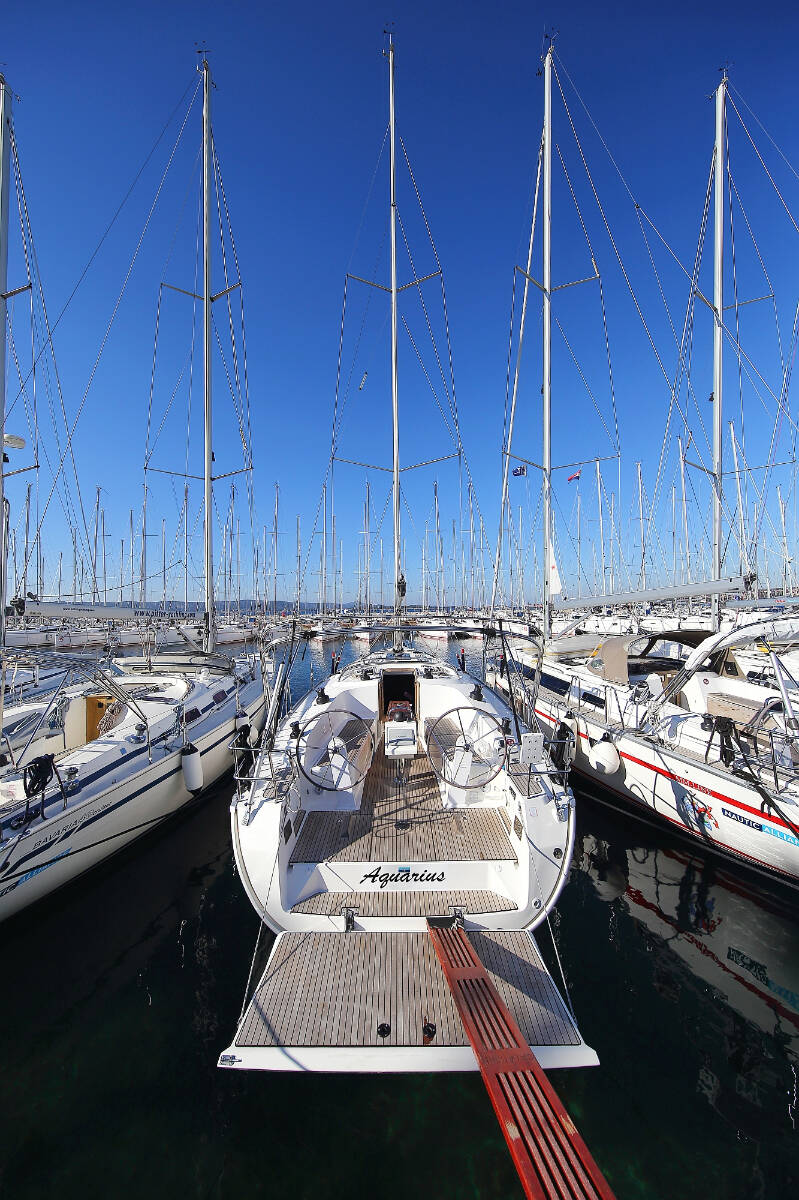 Segelyacht Bavaria Cruiser 41 Aquarius, Baujahr 2017, liegt im ACI Marina Trogir, Split & Umgebung, Kroatien vor Anker. Es verfügt über 3 Kabinen und bietet Platz für 6 + 1 Personen mit 2 Toiletten.