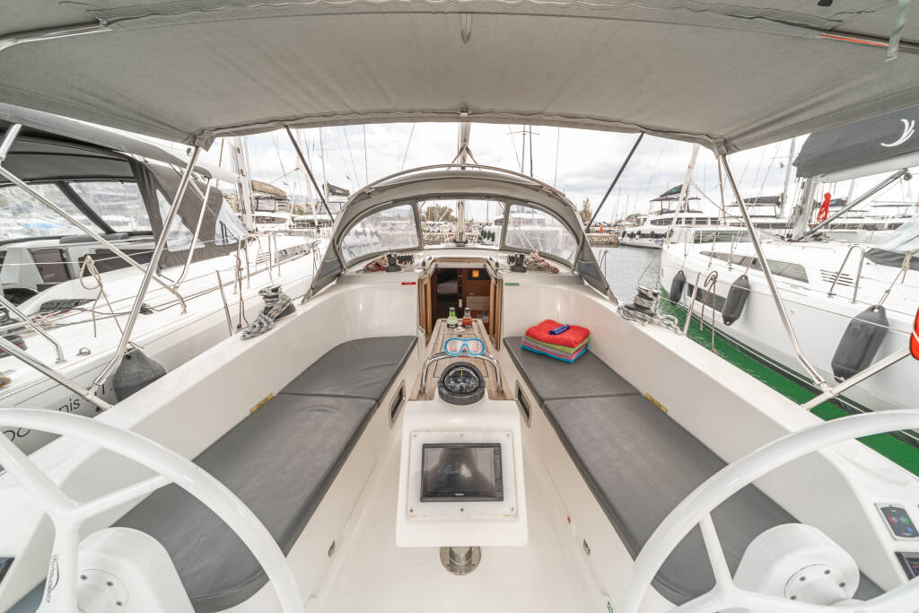 Segelyacht Bavaria Cruiser 41 Laertis, Baujahr 2016, liegt im Volos, Skiathos/Sporades, Volos, Griechenland vor Anker. Es verfügt über 3 Kabinen und bietet Platz für 6 + 2 Personen mit 2 Toiletten.