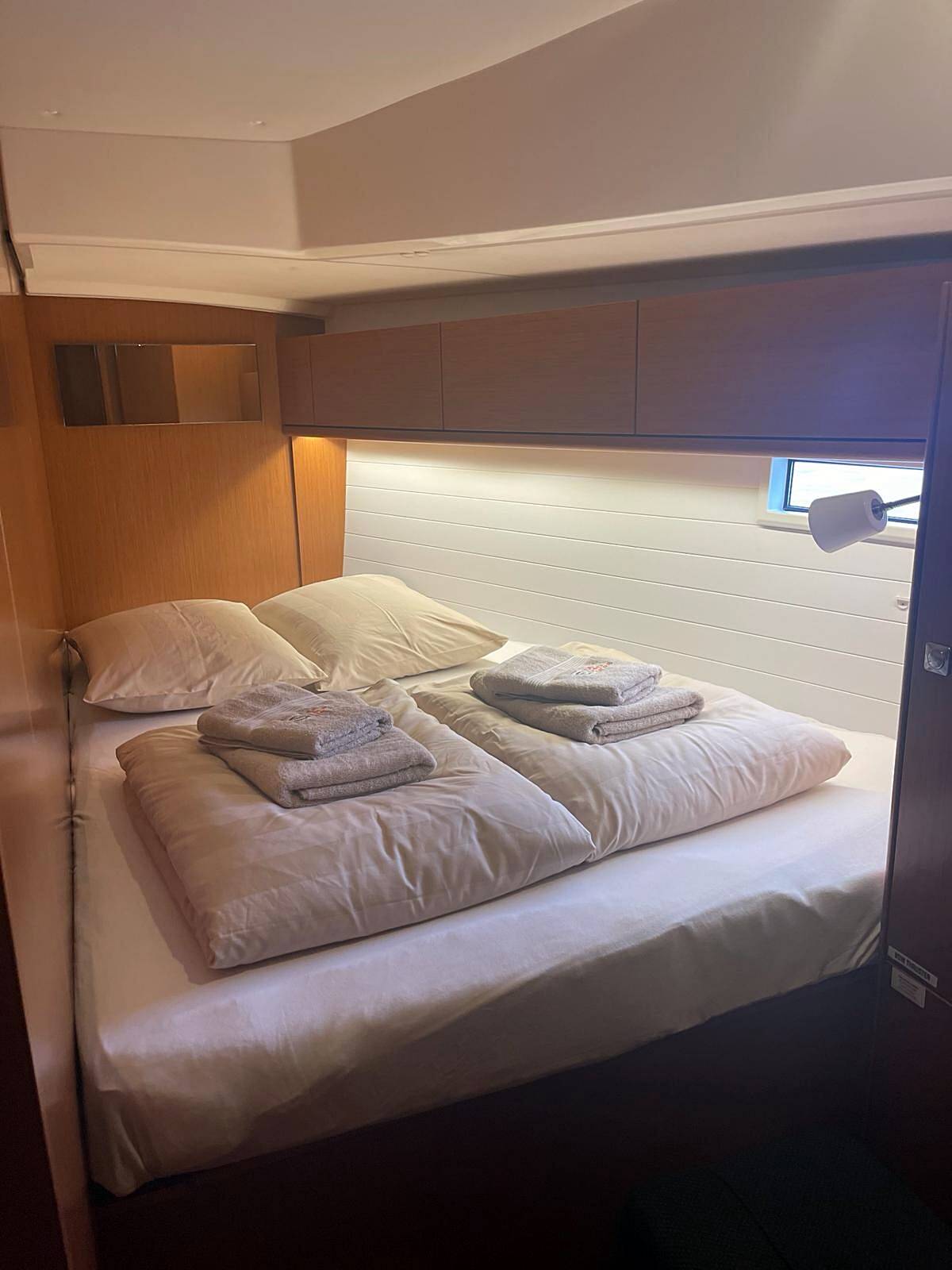 Unsere Bavaria Cruiser 46 Athene verfügt über 4 Kabinen und kann mit max. 9 Personen (1 Schlafmöglichkeit im Salon) belegt werden. An Bord befinden sich 3 Nasszellen mit WC und Dusche. Eine Nespresso-Kaffeemaschine, kostenloses WiFi, Heizung und Inverter machen das Leben an Bord komfortabel. Auch moderne Unterwasserbeleuchtung gehört zur Ausstattung. Auch für kühlere Wetterlagen ist die Athene gut ausgestattet. Durch eine Kuchenbude, die vor Wind und Regen schützt, können Sie auch in der Herbst-Saison entspannte Stunden an Bord genießen. Die Yacht ist mit Solar ausgestattet und produziert umweltfreundlich Strom.Unsere Yachten sind mit C.I.G.O. Charter Information Guide Online ausgestattet. Unbegrenztes Internet, Beiboot und Außenborder sind im Charterpreis enthalten.