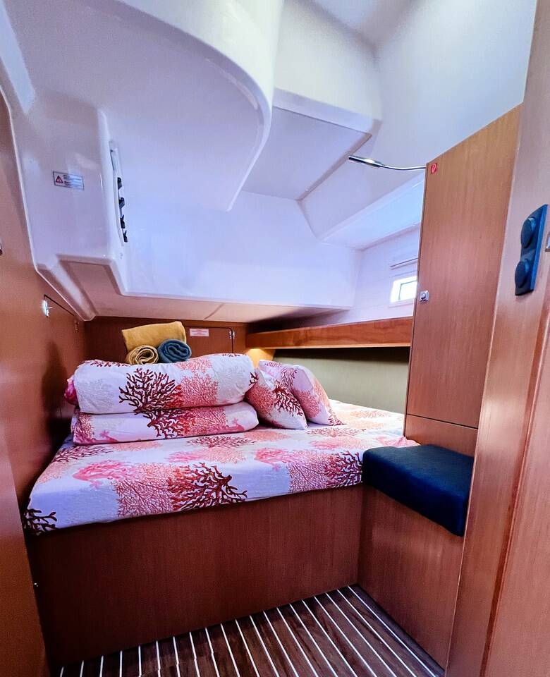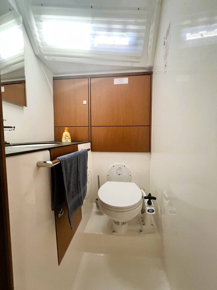 Segelyacht Bavaria Cruiser 46 Summer Breeze, Baujahr 2024, liegt im ACI Marina Split, Split & Umgebung, Kroatien vor Anker. Es verfügt über 3 + 1 Kabinen und bietet Platz für 8 + 1 Personen mit 3 Toiletten.
