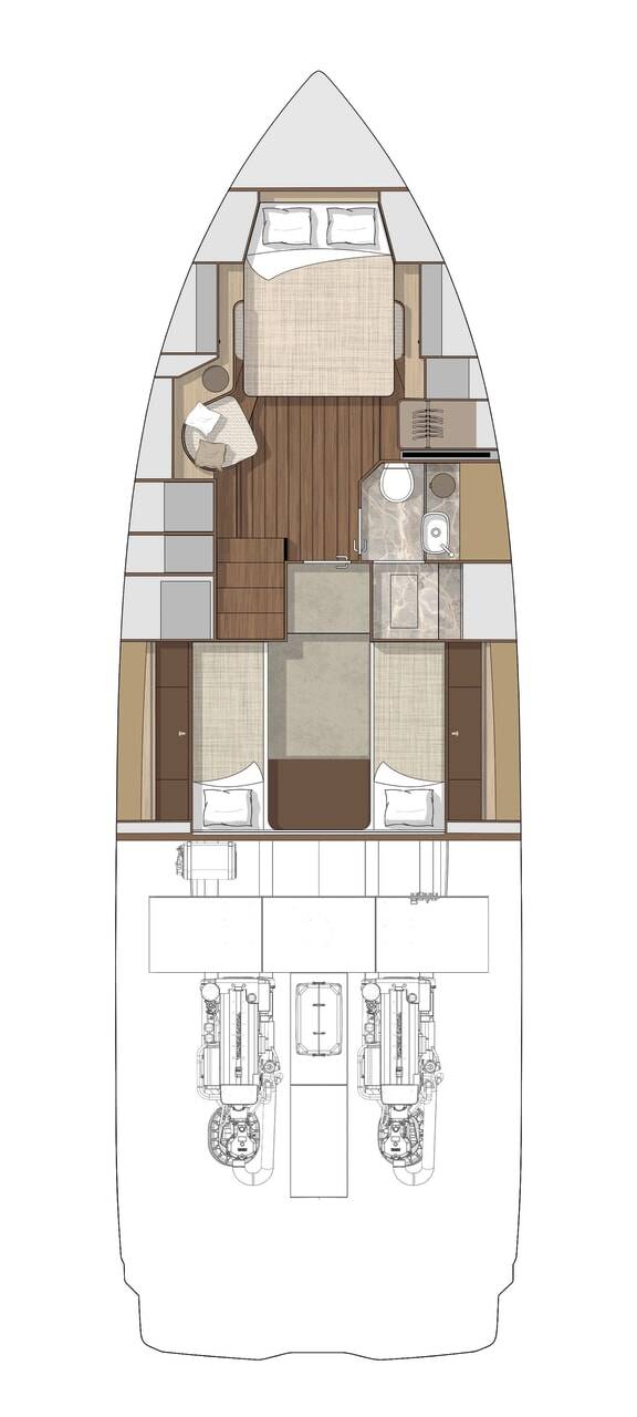 Motoryacht Cranchi A46 NN3, Baujahr 2022, liegt im Marina di Portisco, Sardinien, Italien vor Anker. Es verfügt über 1 Kabinen und bietet Platz für 2 Personen mit 1 Toiletten.