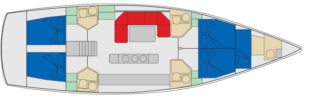Segelyacht D&D Kufner 54 Six on the Sea, Baujahr 2025, liegt im Salerno, Campania, Italien vor Anker. Es verfügt über 4 + 1 Kabinen und bietet Platz für 8 + 1 + 1 Personen mit 4 + 1 Toiletten.