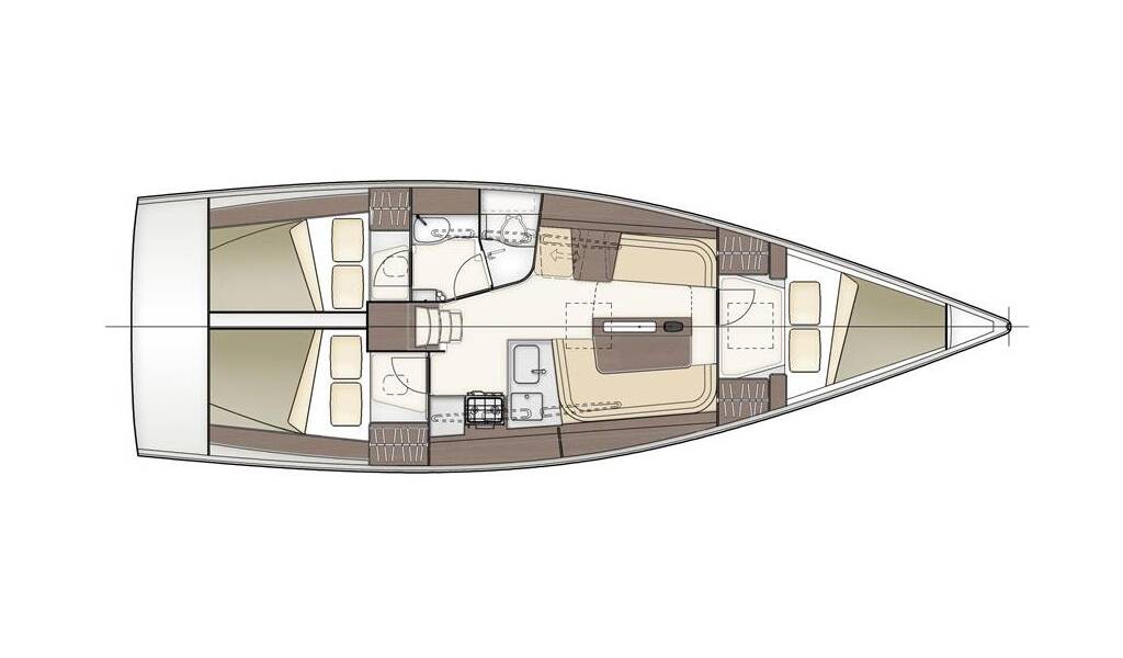 Segelyacht Dehler 38 Redshift, Baujahr 2014, liegt im Marina Kornati, Biograd, Zadar & Umgebung, Kroatien vor Anker. Es verfügt über 3 Kabinen und bietet Platz für 6 + 2 Personen mit 1 Toiletten.