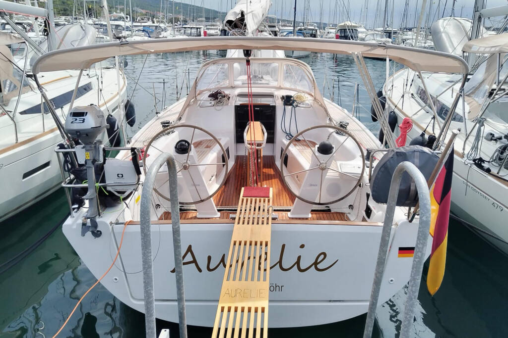 Segelyacht Dehler 38 SQ Aurélie, Baujahr 2023, liegt im Marina Punat, Krk, Kvarner, Kroatien vor Anker. Es verfügt über 3 Kabinen und bietet Platz für 6 + 1 Personen mit 1 Toiletten.