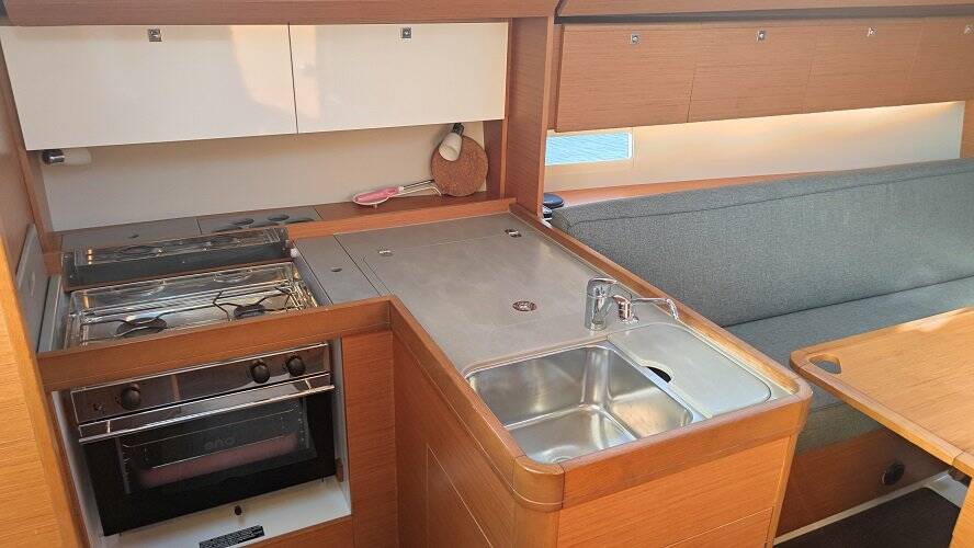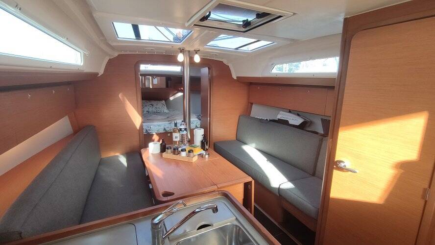 Segelyacht Dufour 360 GL Gracia, Baujahr 2022, liegt im Fethiye, Yacht Classic Hotel Marina, Aegean, Türkei vor Anker. Es verfügt über 3 Kabinen und bietet Platz für 6 Personen mit 1 Toiletten.
