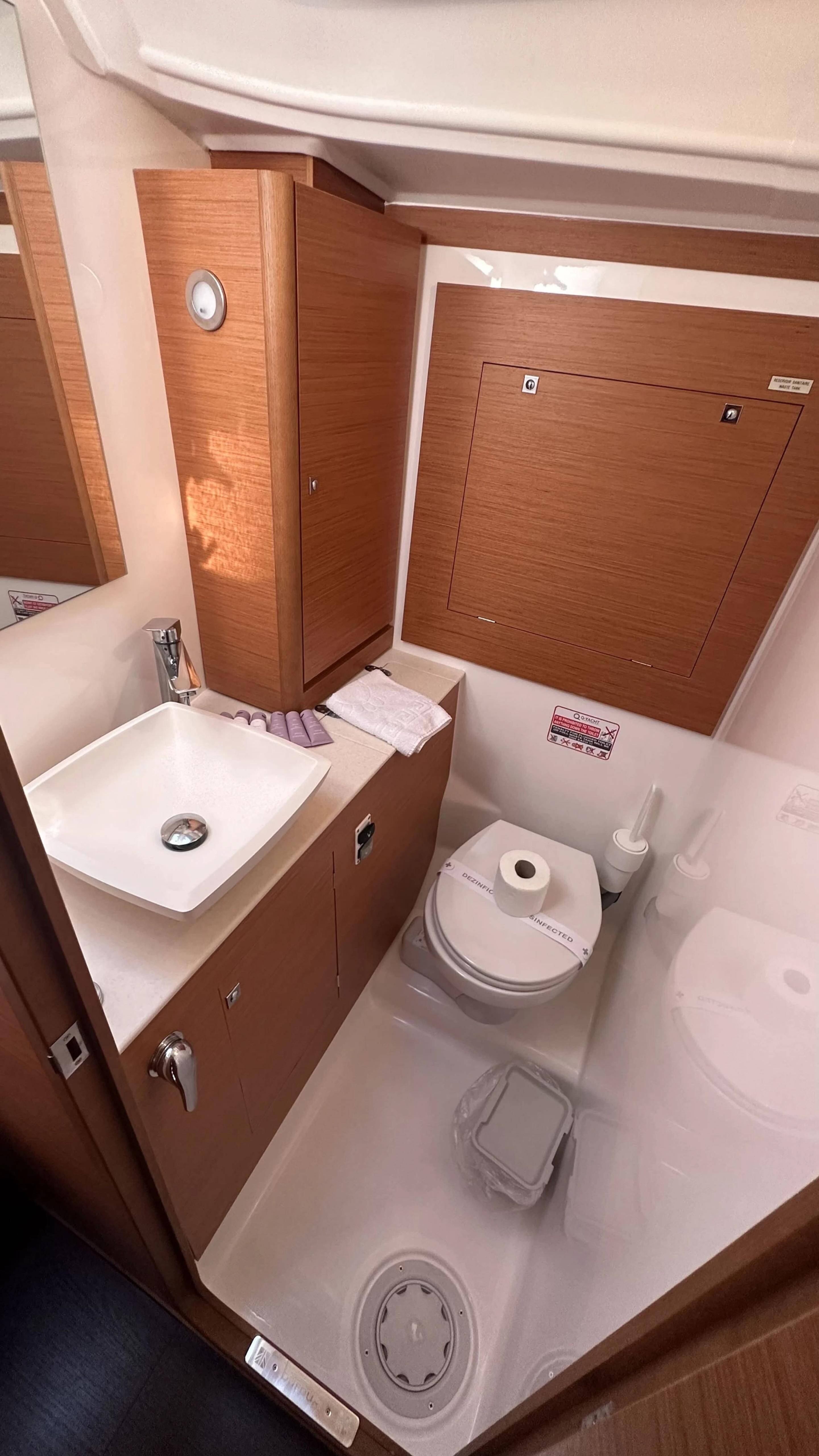 Segelyacht Dufour 390 GL Andela, Baujahr 2023, liegt im Marina Kremik, Primosten, Sibenik & Umgebung, Kroatien vor Anker. Es verfügt über 3 Kabinen und bietet Platz für 6 + 2 Personen mit 2 Toiletten.
