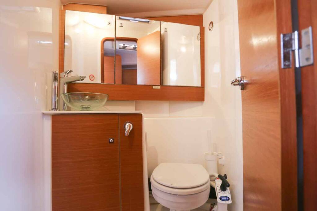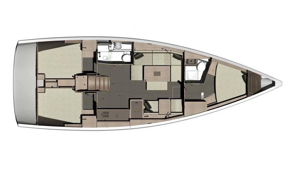 Segelyacht Dufour 412 Blue Sky, Baujahr 2018, liegt im Golfo Aranci Marina Dell’Isola, Sardinien, Italien vor Anker. Es verfügt über 3 Kabinen und bietet Platz für 6 + 1 Personen mit 2 Toiletten.