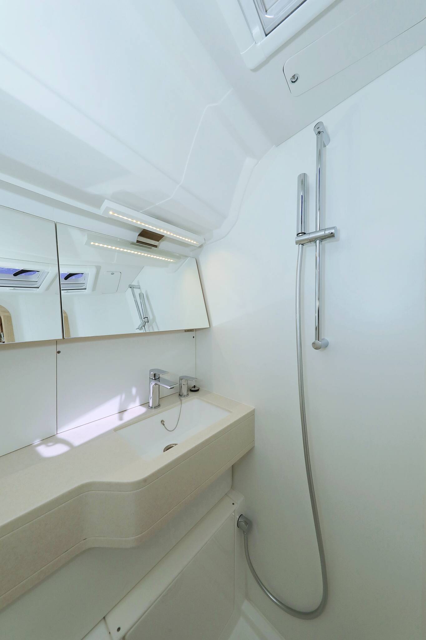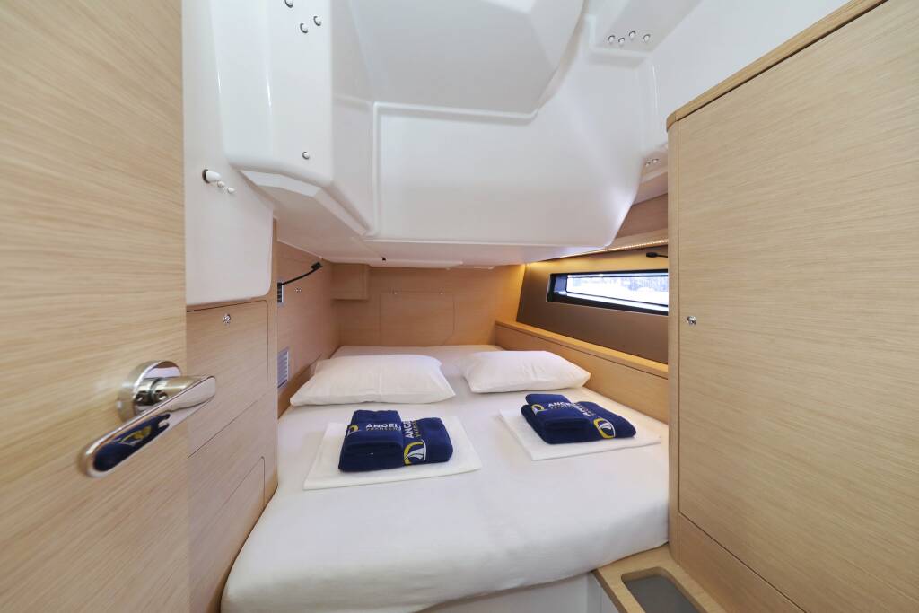 Segelyacht Dufour 44 Scooby Doo, Baujahr 2024, liegt im Pula, Marina Polesana, Istrien, Kroatien vor Anker. Es verfügt über 4 Kabinen und bietet Platz für 8 + 1 Personen mit 4 Toiletten.