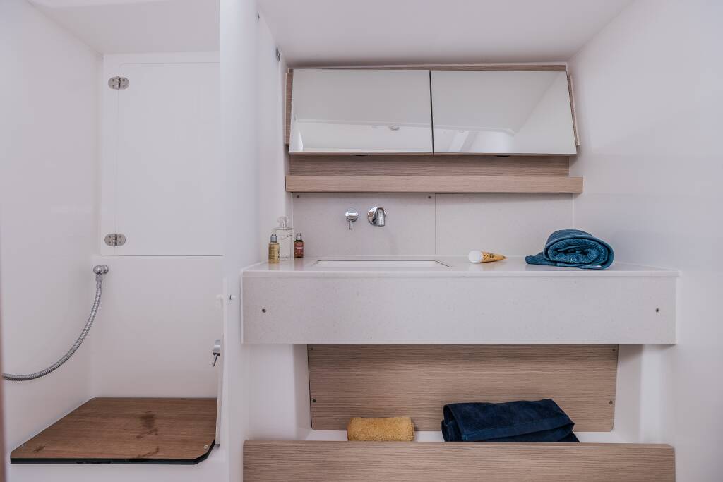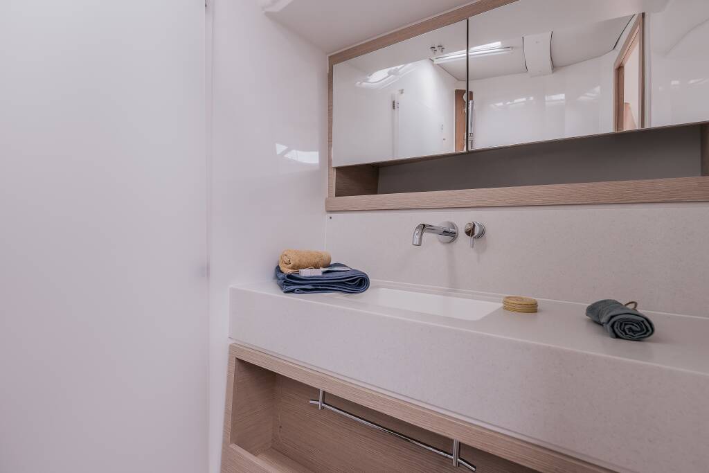 Segelyacht Dufour 470 Galeo, Baujahr 2024, liegt im St. Raphael, Provence-Alpes-Côte d'Azur, Frankreich vor Anker. Es verfügt über 3 Kabinen und bietet Platz für 6 + 2 Personen mit 3 Toiletten.