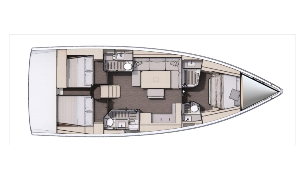 Segelyacht Dufour 470 Jolie, Baujahr 2022, liegt im Marina Šangulin, Biograd, Zadar & Umgebung, Kroatien vor Anker. Es verfügt über 3 Kabinen und bietet Platz für 6 + 2 Personen mit 3 Toiletten.