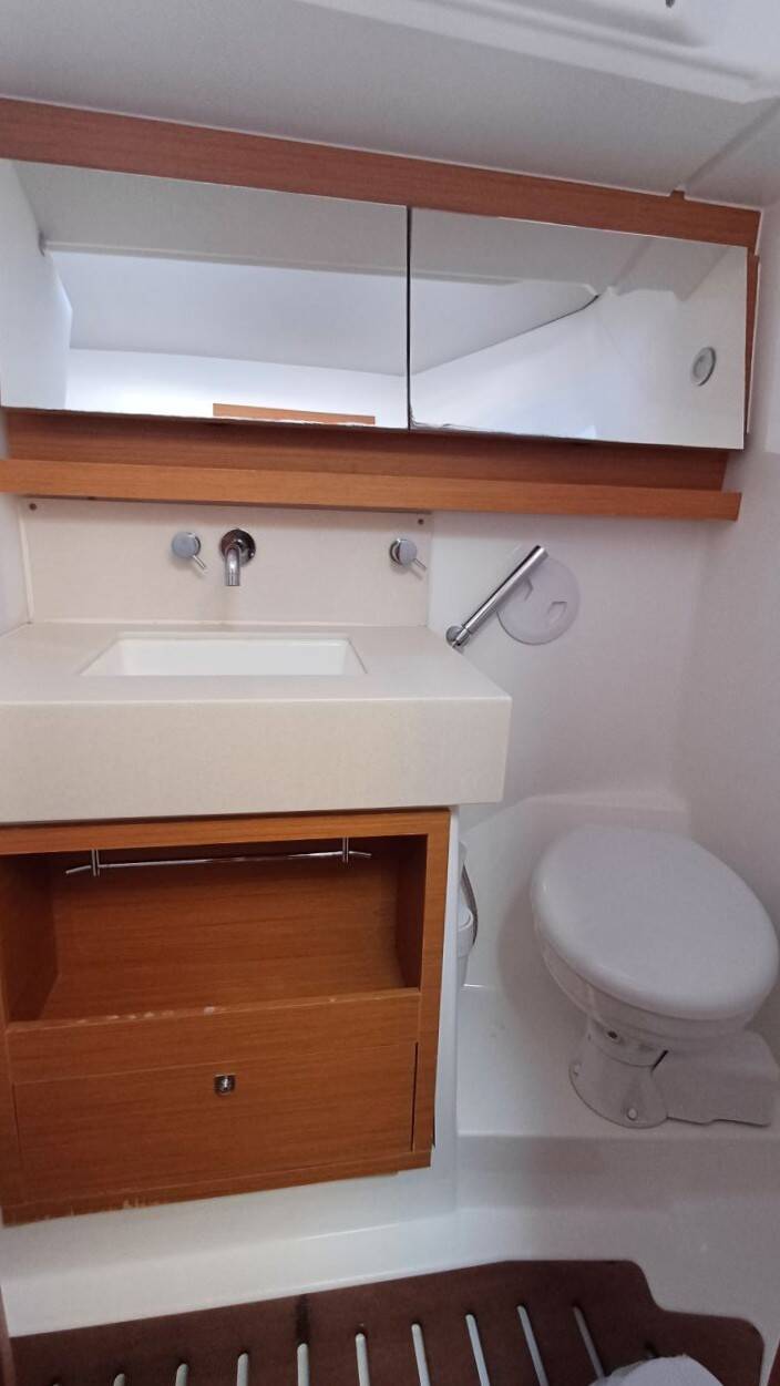 Segelyacht Dufour 470 KYBALION, Baujahr 2023, liegt im Lavrion, main port, Athens area/Saronic/Peloponese, Griechenland vor Anker. Es verfügt über 4 + 1 Kabinen und bietet Platz für 8 + 2 + 1 Personen mit 4 Toiletten.
