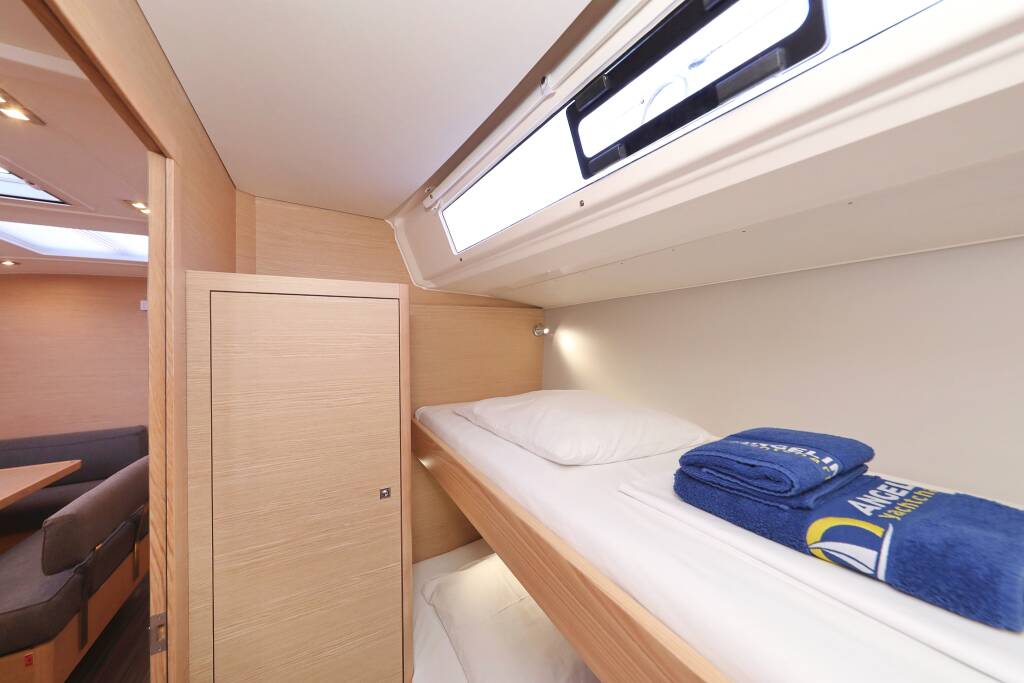 Segelyacht Dufour 470 Odyssey, Baujahr 2023, liegt im Sukosan, D-Marin Dalmacija Marina, Zadar & Umgebung, Kroatien vor Anker. Es verfügt über 4 Kabinen und bietet Platz für 8 + 2 Personen mit 2 Toiletten.