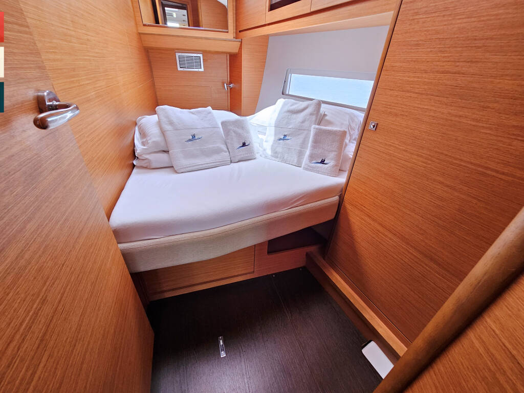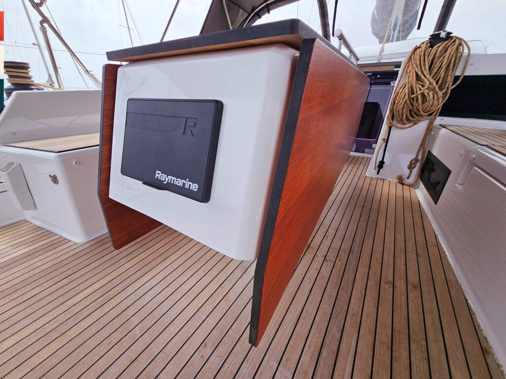 Segelyacht Dufour 470 Toccata, Baujahr 2023, liegt im Marina Frapa, Rogoznica, Sibenik & Umgebung, Kroatien vor Anker. Es verfügt über 4 Kabinen und bietet Platz für 8 + 2 Personen mit 4 Toiletten.