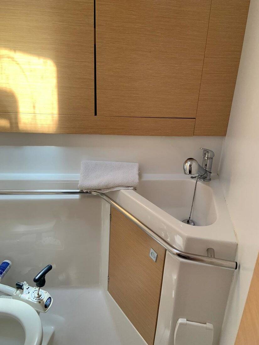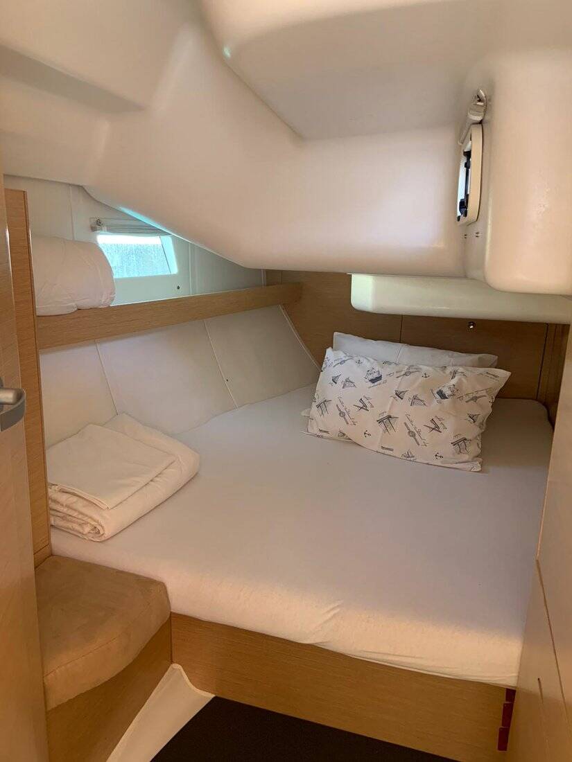 Segelyacht Elan 444 Impression Živa, Baujahr 2013, liegt im ACI Marina Split, Split & Umgebung, Kroatien vor Anker. Es verfügt über 4 Kabinen und bietet Platz für 8 + 2 Personen mit 2 Toiletten.