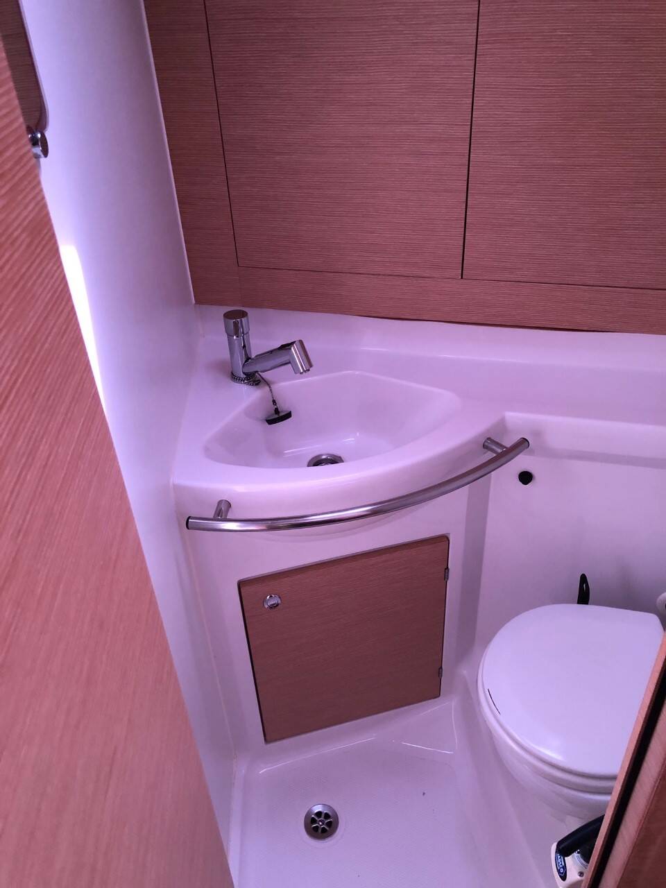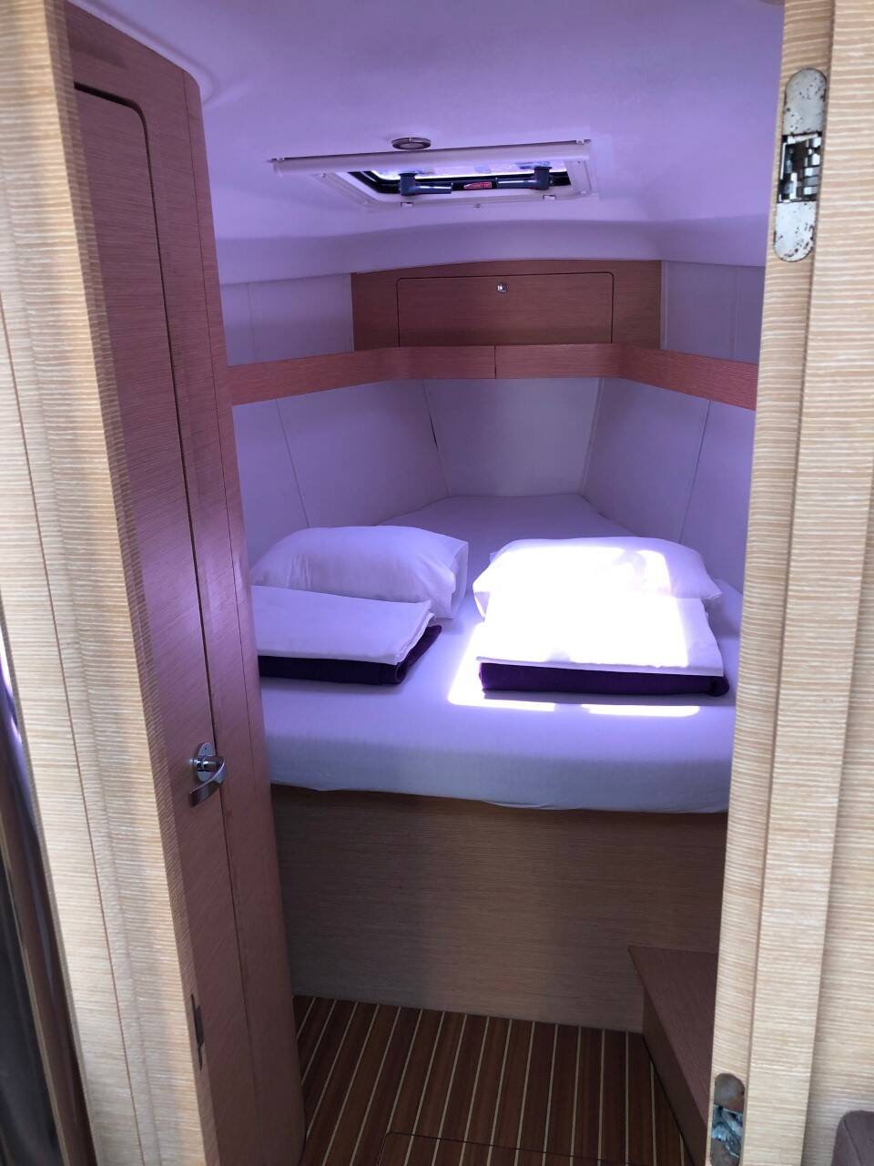 Segelyacht Elan Impression 40 Laali, Baujahr 2016, liegt im Pula, Marina Polesana, Istrien, Kroatien vor Anker. Es verfügt über 3 Kabinen und bietet Platz für 6 + 2 Personen mit 2 Toiletten.