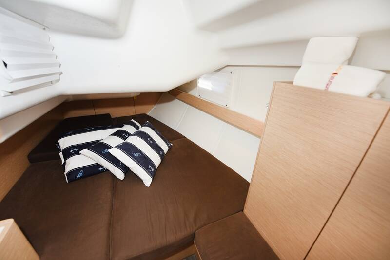 Segelyacht Elan Impression 40 Vili, Baujahr 2015, liegt im Marina Zadar (ex. Tankerkomerc), Zadar & Umgebung, Kroatien vor Anker. Es verfügt über 3 Kabinen und bietet Platz für 6 + 2 Personen mit 2 Toiletten.