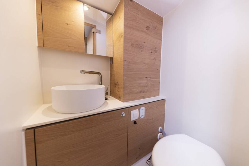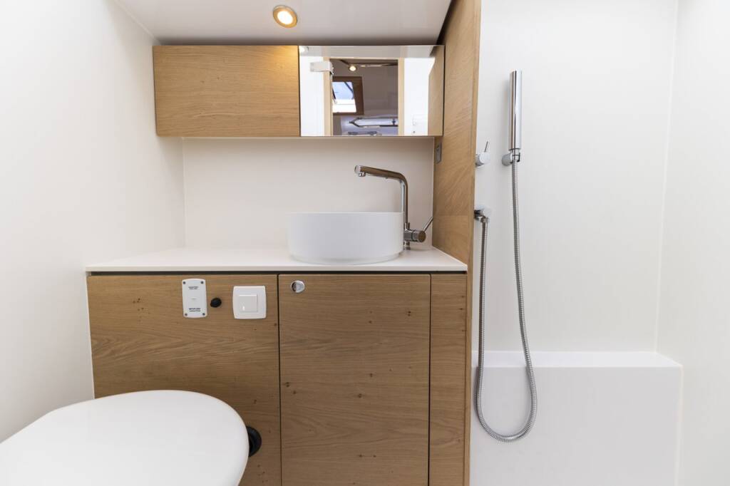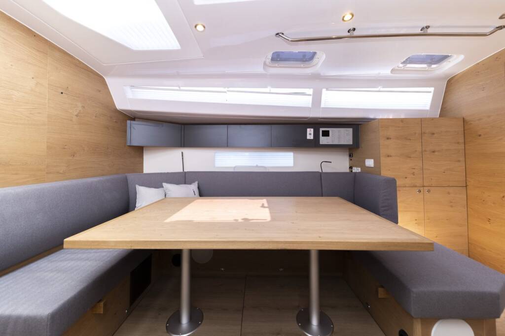 Segelyacht Elan Impression 45 Supreme, Baujahr 2023, liegt im Marina Zadar (ex. Tankerkomerc), Zadar & Umgebung, Kroatien vor Anker. Es verfügt über 4 Kabinen und bietet Platz für 8 + 2 Personen mit 2 Toiletten.