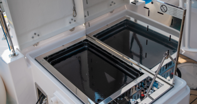 Grill, Kühlschrank im Cockpit, große Badeplattform, Teakholz-Cockpit, Ambientebeleuchtung, Salon mit Klimaanlage, Bugstrahlruder