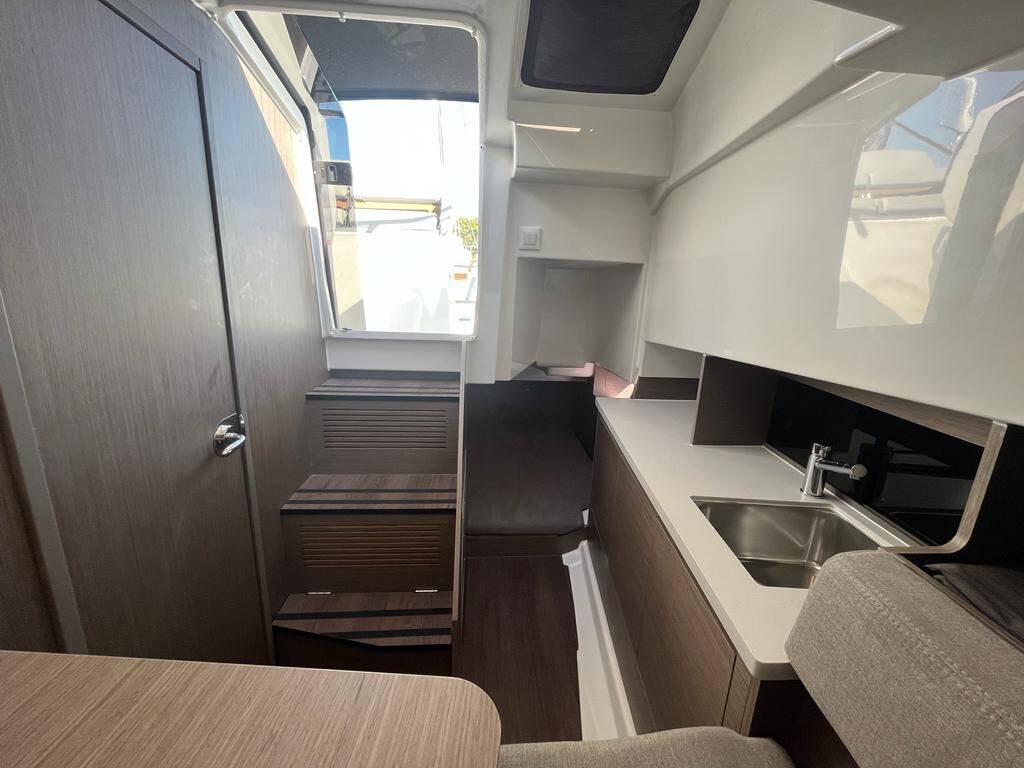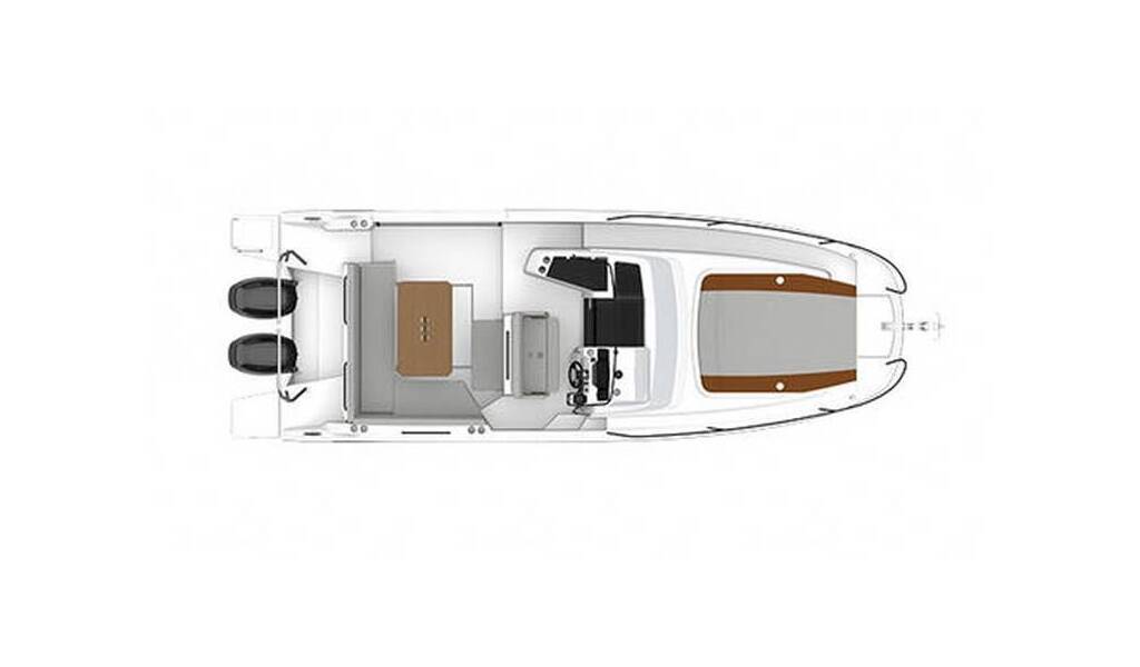 Motorboot Flyer 9 SUNdeck Flyer 9, Baujahr 2023, liegt im ACI Marina Rovinj, Istrien, Kroatien vor Anker. Es verfügt über 1 Kabinen und bietet Platz für 2 Personen mit 1 Toiletten.