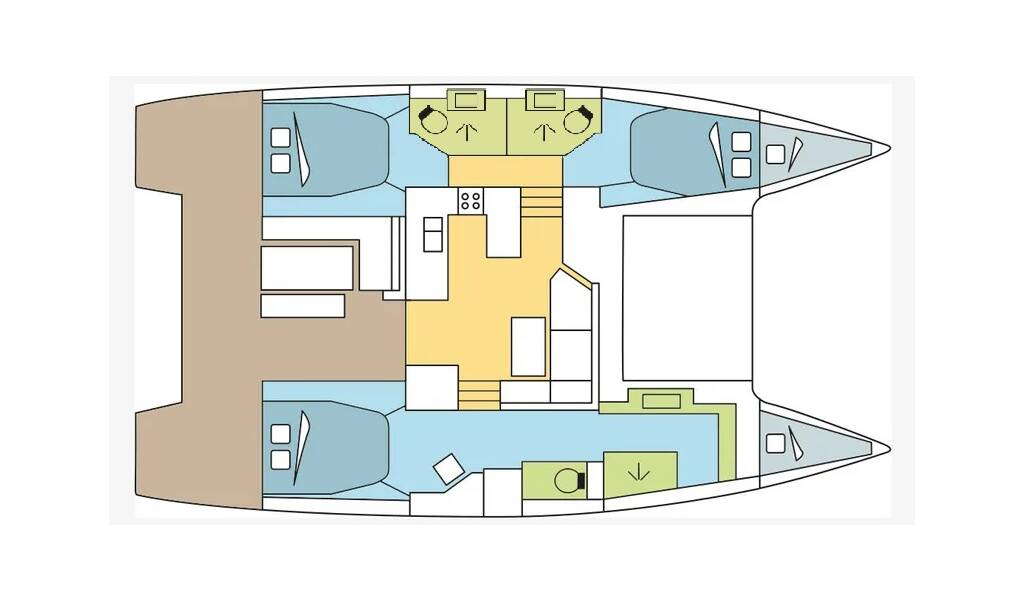 + provisioning, Crew on board must have their own toilets/ showers. If either a skipper or a hostess/cook is on board, 1 double cabin will be required for him/her. If both a skipper and a hostess/cook are on board, 1 double cabin and 1 forepeak cabin will be required for them. Exceptions exists for specific layouts, Sales Agents will provide more details about the different boat models // In Spain, law requires clients to pay skipper directly with a contract established between both parties - Zahlbar vor Ort