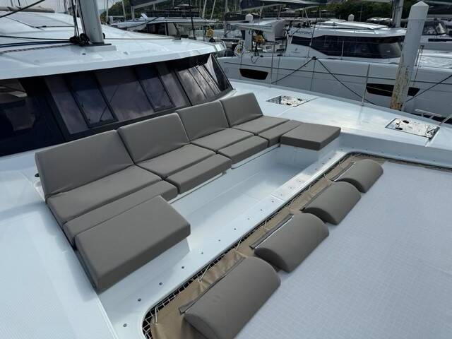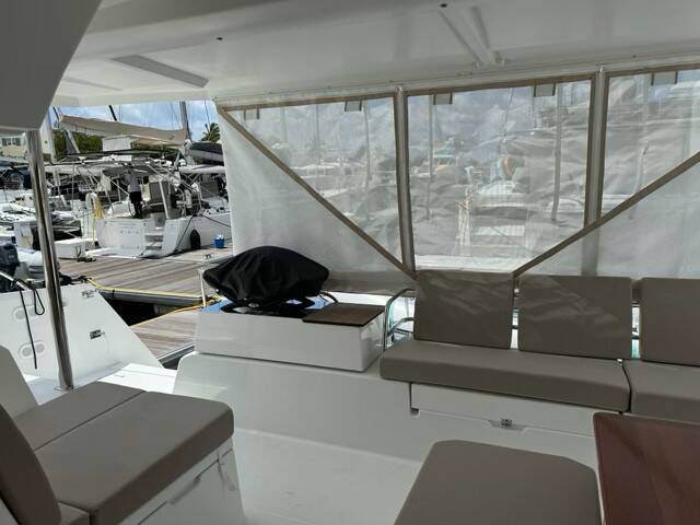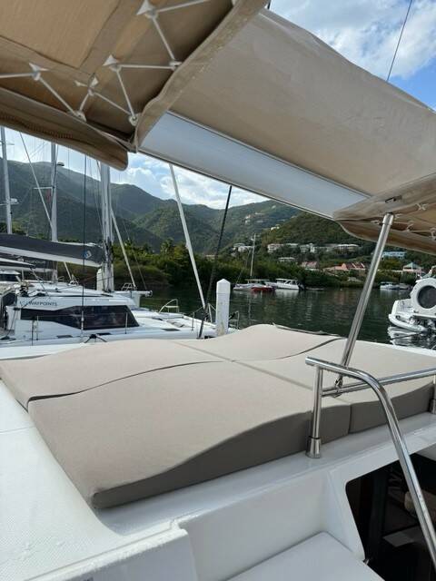 Katamaran Fountaine Pajot Astrea 42 Unsupervised, Baujahr 2023, liegt im BVI, Tortola, Nanny Cay Marina, Britische Jungferninseln (BVI), Britische Jungferninseln (BVI) vor Anker. Es verfügt über 4 Kabinen und bietet Platz für 8 Personen mit 4 Toiletten.