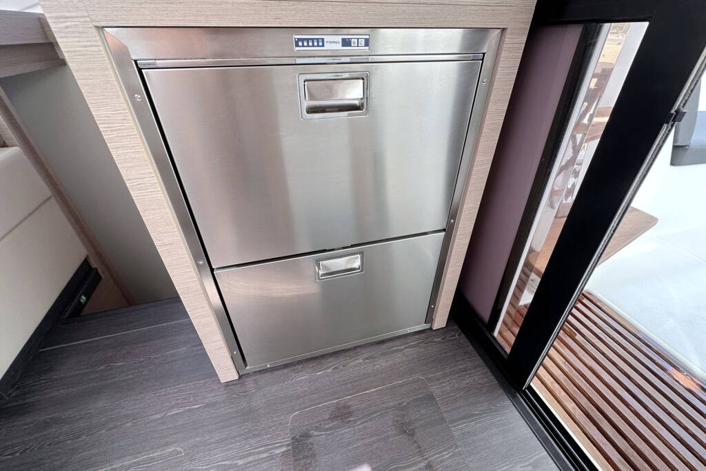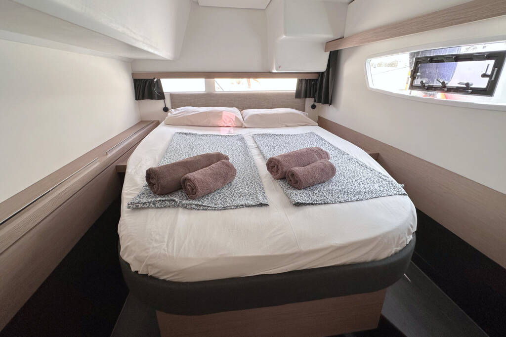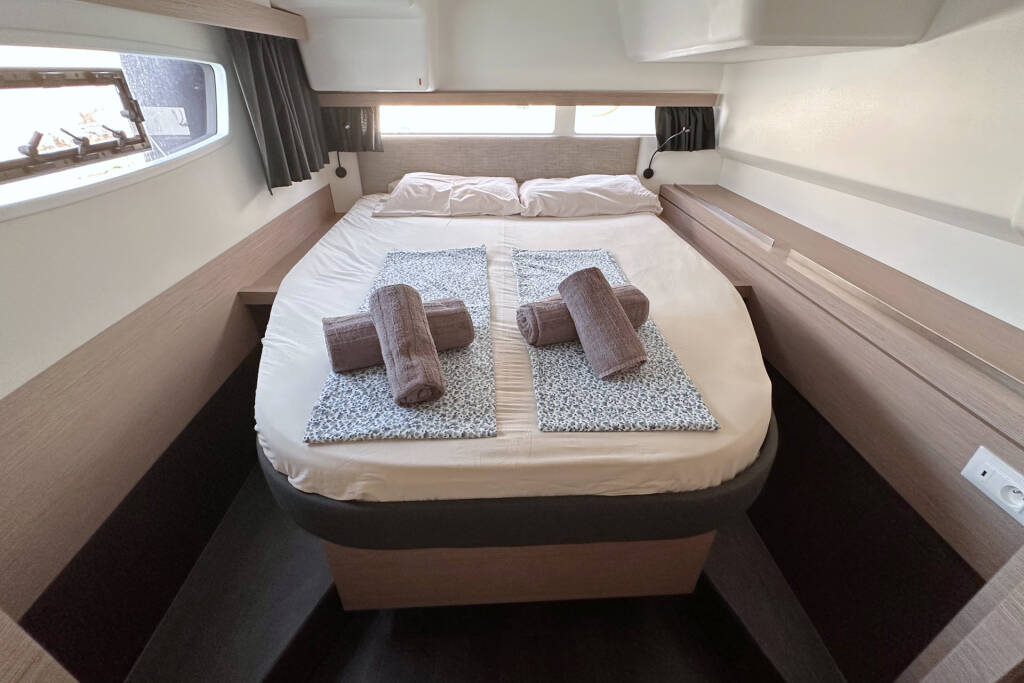 Katamaran Fountaine Pajot Isla 40 Laja, Baujahr 2023, liegt im Mallorca, Can Pastilla, Balearische Inseln, Spanien vor Anker. Es verfügt über 4 + 1 Kabinen und bietet Platz für 8 + 2 + 1 Personen mit 2 Toiletten.